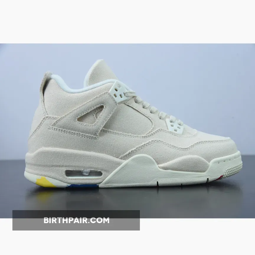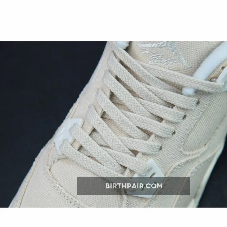“The Women’s Air Jordan 4 Retro ‘Blank Canvas’ presents an undyed design ready-made for customization. The layered upper is constructed from off-white canvas, featuring raw edges and tonal stitching. Molded eyelets and embroidered Jumpman branding at the tongue and heel maintain the shoe’s one-note finish.Part minimalistic, part statement-making, the Air Jordan 4 Blank Canvas promises the best of both worlds. True to its name, this version of the Air Jordan 4 presents a colourless upper crafted with low-maintenance canvas fabric and TPU accents in the same snowy shade.