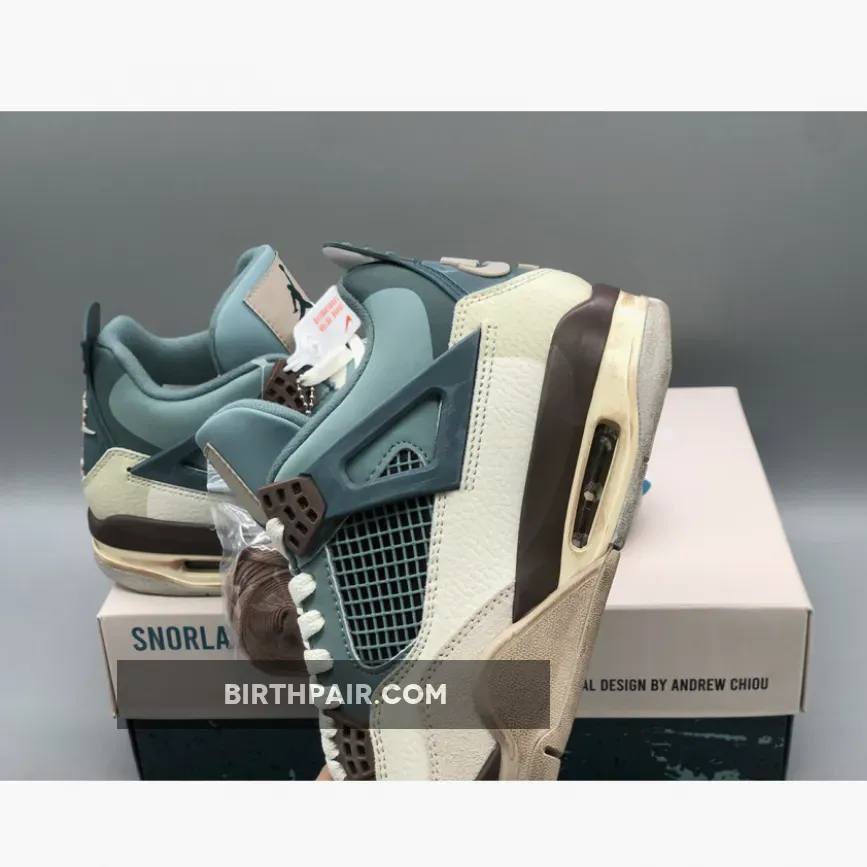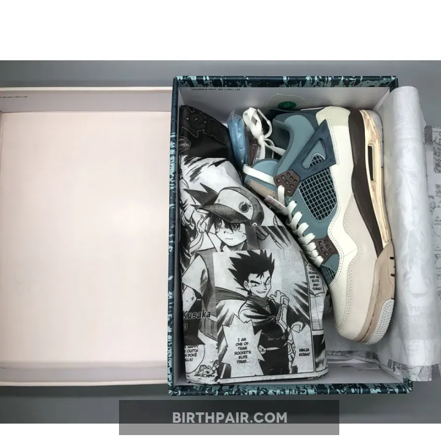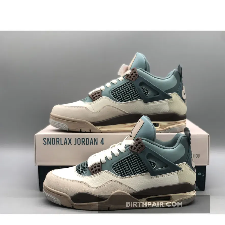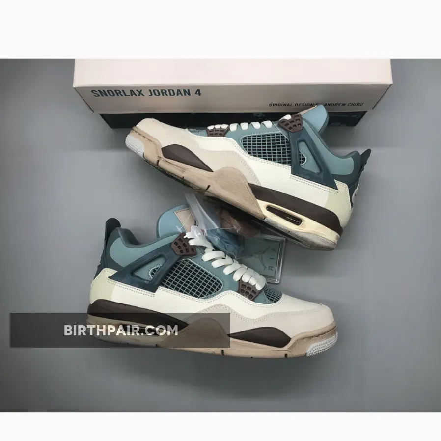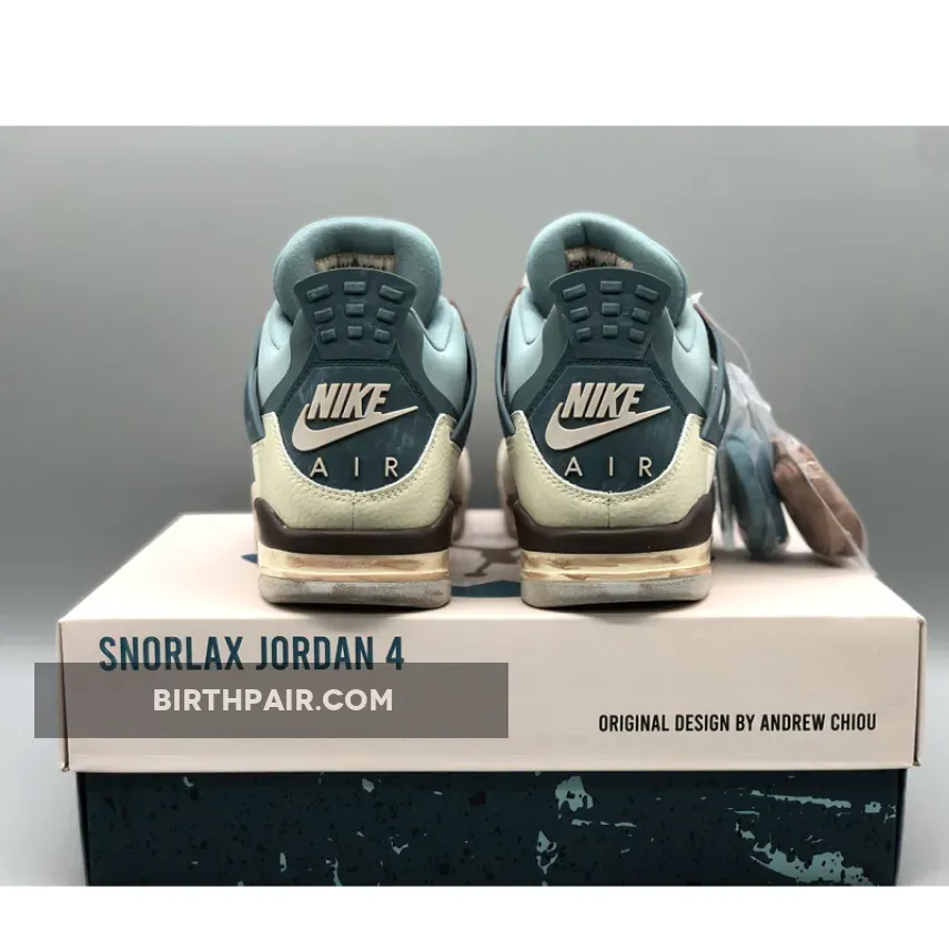 This upcoming “Snorlax Custom” is so dashing that you will immediately fall in love with them when you see them. Also, they are timeless and perfect for any season. As you can see, the uppers on the Air Jordan 4 “Snorlax Custom” are split into top and bottom sections representing tones of beige and blue. Then Darker patches of the shades offer a 3D effect pulled from the shadows seen on the rotund form of Snorlax. Elevating the sneaker are brown Air-assisted midsoles and grey/beige rubber outsoles that reproduce the look of the feet seen on the Pokémon. This shoe is truly a masterpiece you should not miss at any cost.