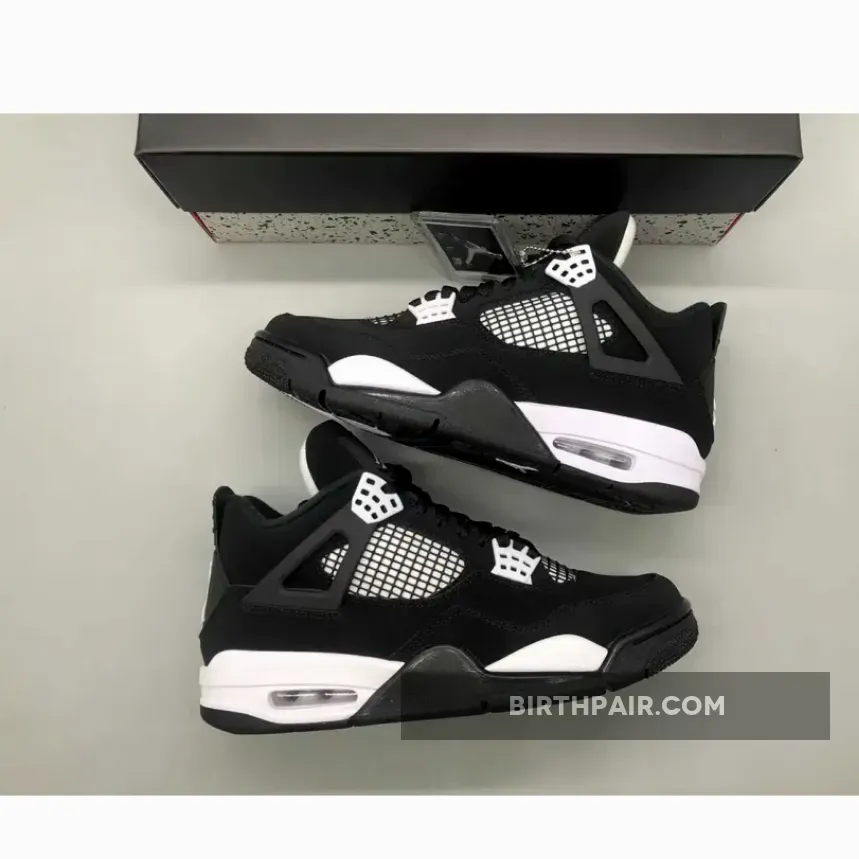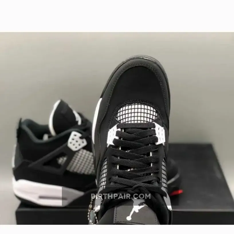 the Air Jordan 4 “White Thunder” will sport a reimagined take on a classic black-and-white color scheme. The pair boasts design cues from both the Air Jordan 4 “Thunder” and “Red Thunder” colorways. Contrasting this darkness, bright shades of white accentuate key areas such as the mid-foot window, midsole, tongue tab, and lacewings, creating a striking visual contrast. This minimalist and refined color scheme is expected to capture the attention of fans, much like the sophisticated appeal of the divisive Dunk Low “Panda” and the Air Jordan 1 ’85 “Black White.”