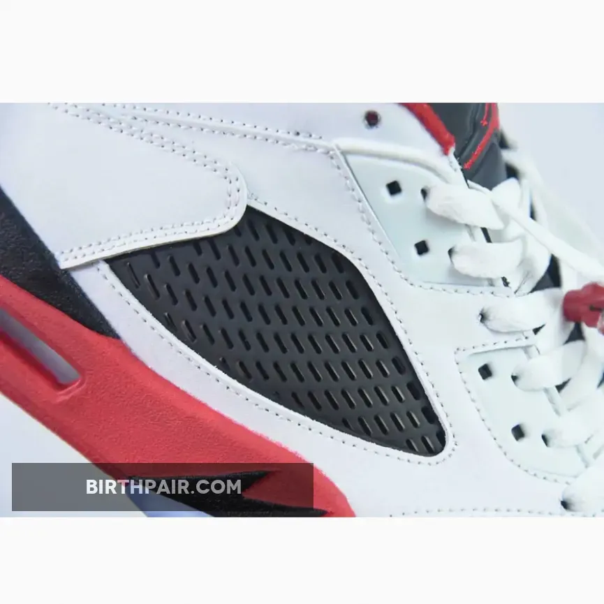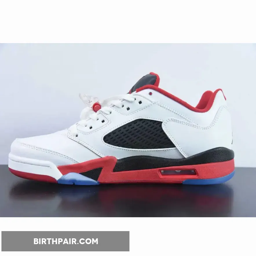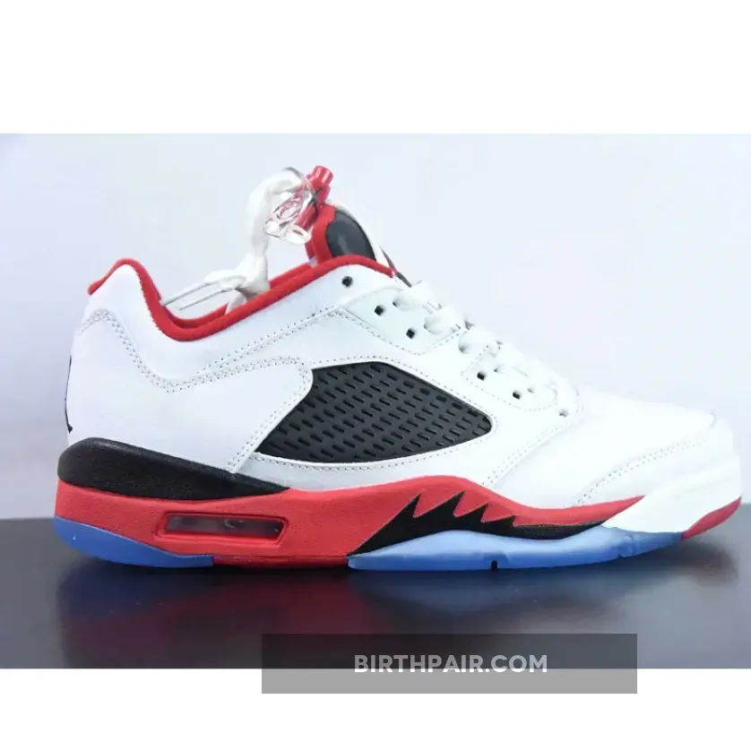 Released in March 2016, the Nike Air Jordan 5 Low ‘Fire Red’ 2016 features a white leather upper with a black mesh panel, instead of the usual clear panel, and Fire Red accents. The low-top design also includes a Jumpman logo on the tongue and heel and an ice blue translucent outsole.