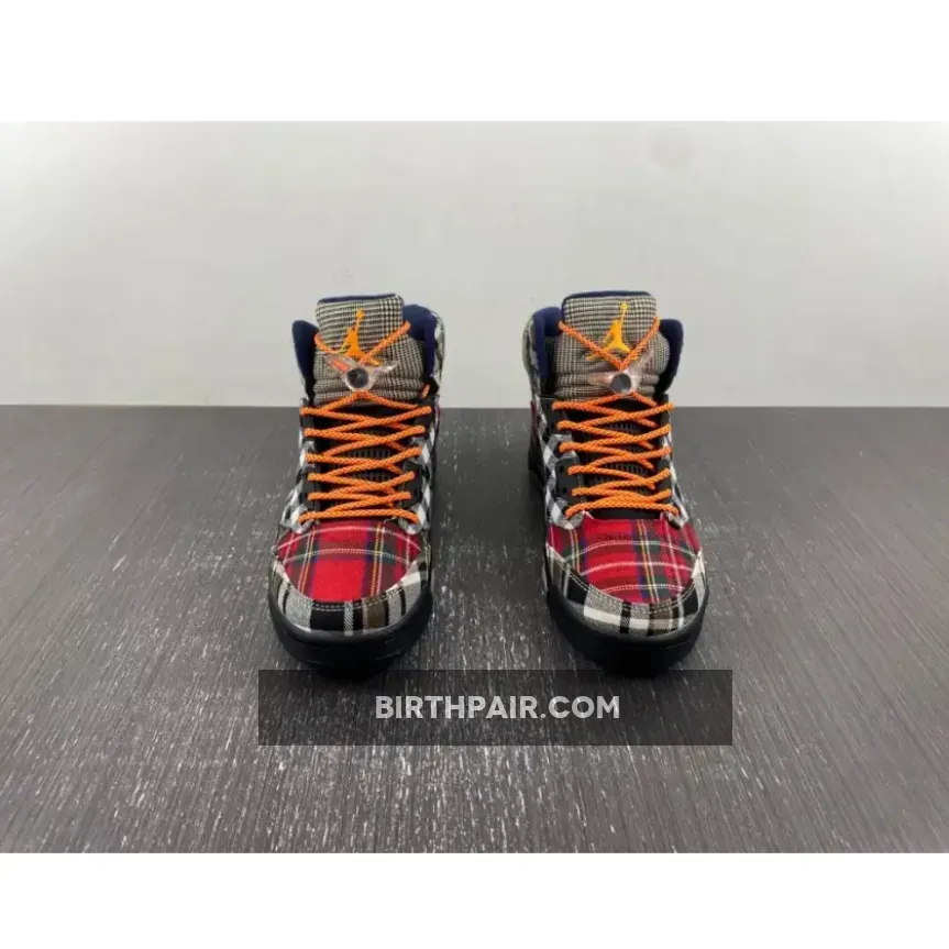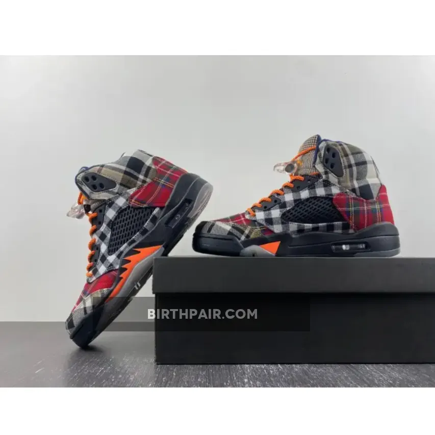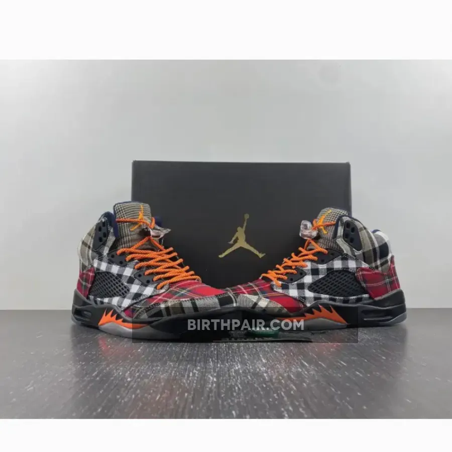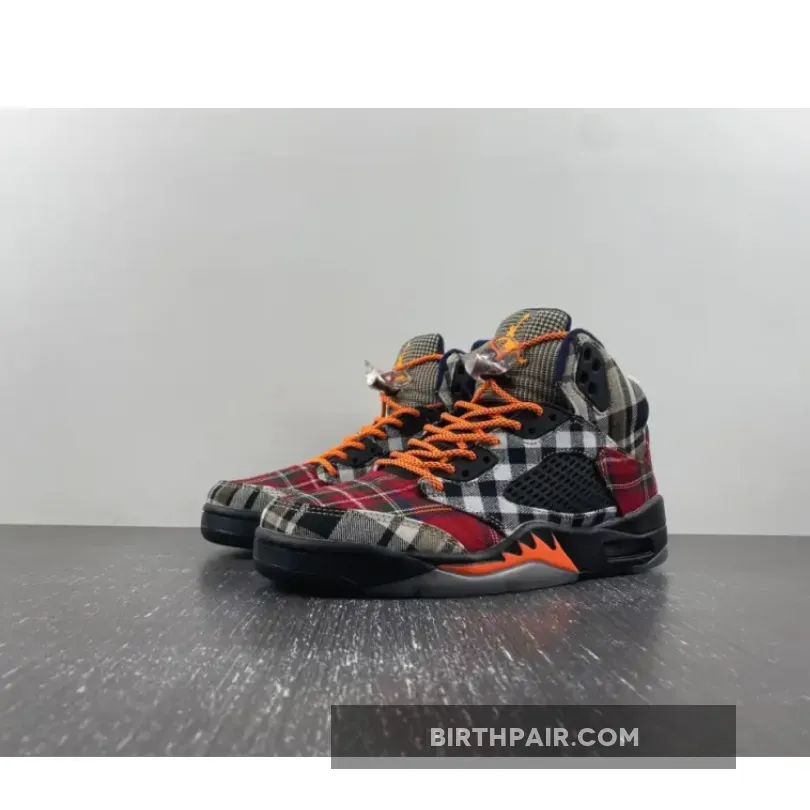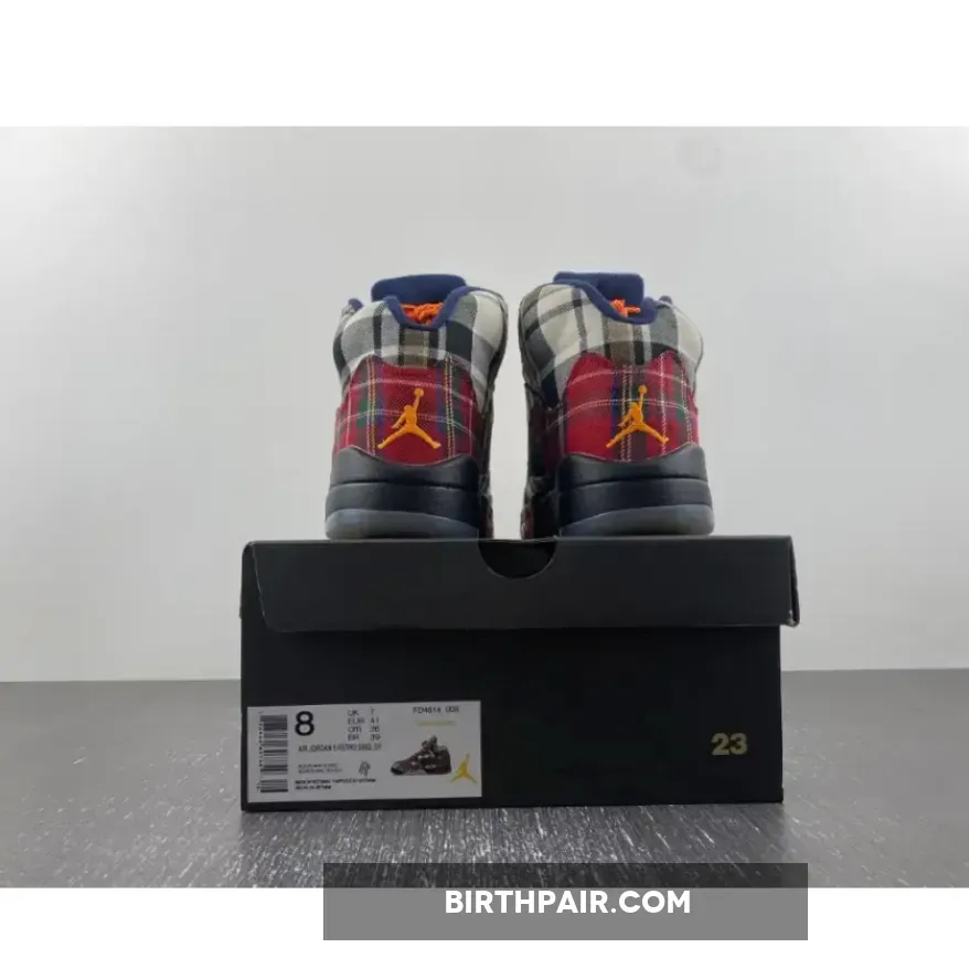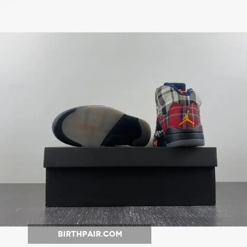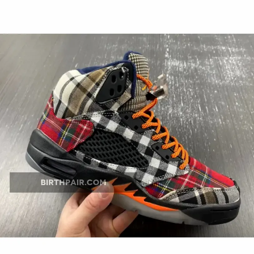 this unique interpretation of the Air Jordan 5 features a unique plaid pattern throughout the entirety of the upper. Don’t get us wrong, we mess with plaid during the Fall season, but we’re just not accustomed to seeing it used on shoes instead of button ups. These motifs range from the contrasting hues of black and white to bursts of red, tan, yellow, green, and gray. For the small-footers that are diggin’ the look, this Air Jordan 5 is adorned with not one, but an assortment of plaid prints.