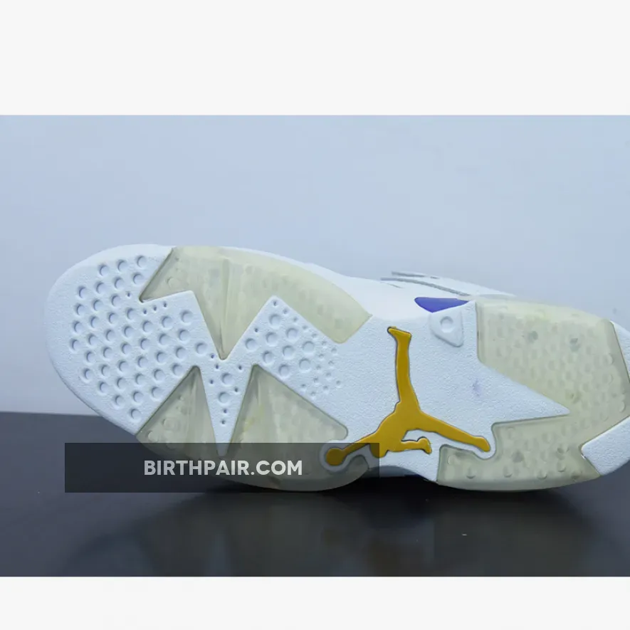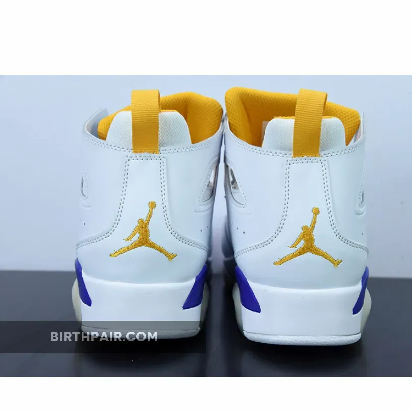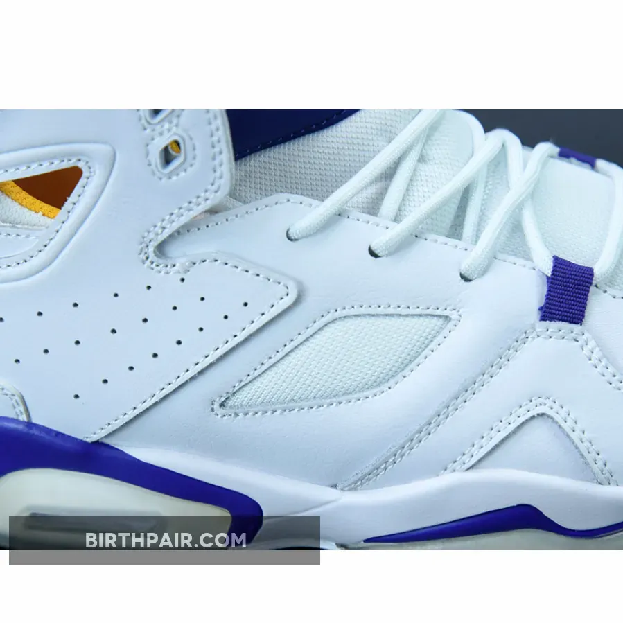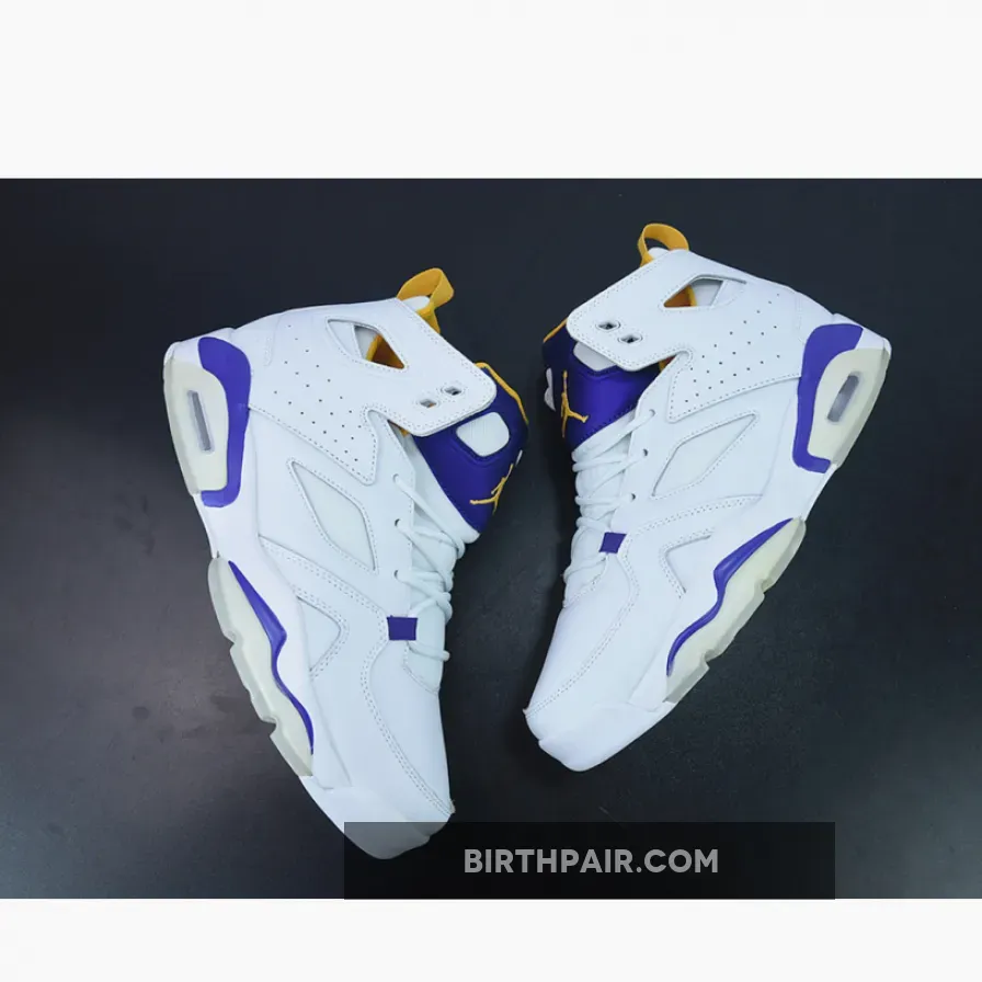 This Jordan Flight Club 91 features a White, Court Purple, and University Gold color combination. Constructed with a mixture of genuine and synthetic leather, the pair comes covered in mostly White. Adding to the Lakers theme, both Purple and Gold run throughout. Lastly, we have details from the Air Jordan 6 that includes the tongue, collar, visible Air unit, and outsole.