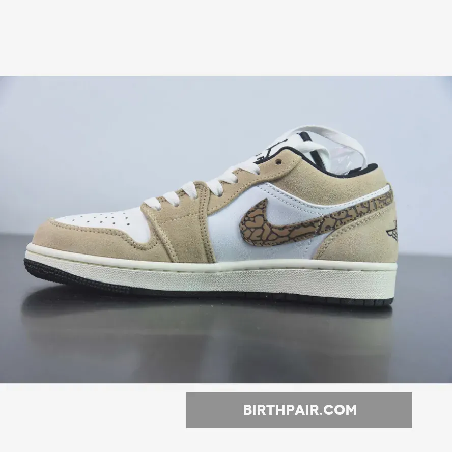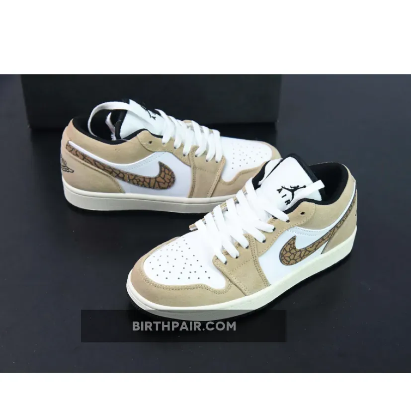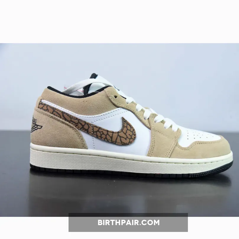 The Air Jordan 1 Low SE Brown Elephant is a low-top take on the eclectic elephant print which lands on the signature Swoosh appliqué.