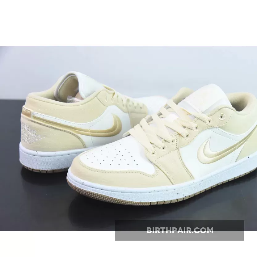 Jordan Brand suits up for the summer season with a new neutral-toned Air Jordan 1 Low. Like the “Celestial Gold” colourway, this women’s rendition sports a canvas-backed construction with embroidered Swooshes. The Air Jordan 1 Low SE “Canvas Tan” flaunts muted tones for a laid-back approach that never goes out of style.For over 35 years, the Air Jordan 1 has remained prominent in the streetwear culture. This debut signature basketball sneaker of the legendary Michael Jordan graced basketball courts for years before reliving its streetwear nostalgia in the next three decades. This shoe has a sail white leather construction reinforced with tan canvas overlays. The embroidered Swooshes on the sides have lines in the middle for more prominence. We can recall a handful of Stüssy x Nike collaborations utilising the same embroidered Swoosh setup such as on the recent Vandal High capsule. The Jordan Wings logo adorns the heel, while the embossed Jumpman branding decorates the tongue.