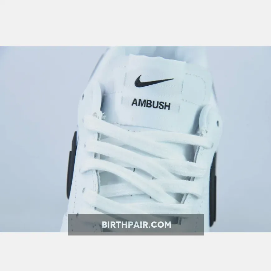 The design maintains elements from the previous drop, with the “Phantom” pair arriving with all-white on the upper and soles. The kicks are contrasted with black Swooshes, which extend beyond the heel for a three-dimensional look. The “Black” shoe is an inverted version of “Phantom” with an all-black upper and off-white Swoosh. Both shoes are complete with contrasting dubraes with three-dimensional “AF1” branding. The tongue is labeled with Nike and AMBUSH®’s logos, as well as the footbed and heel.
