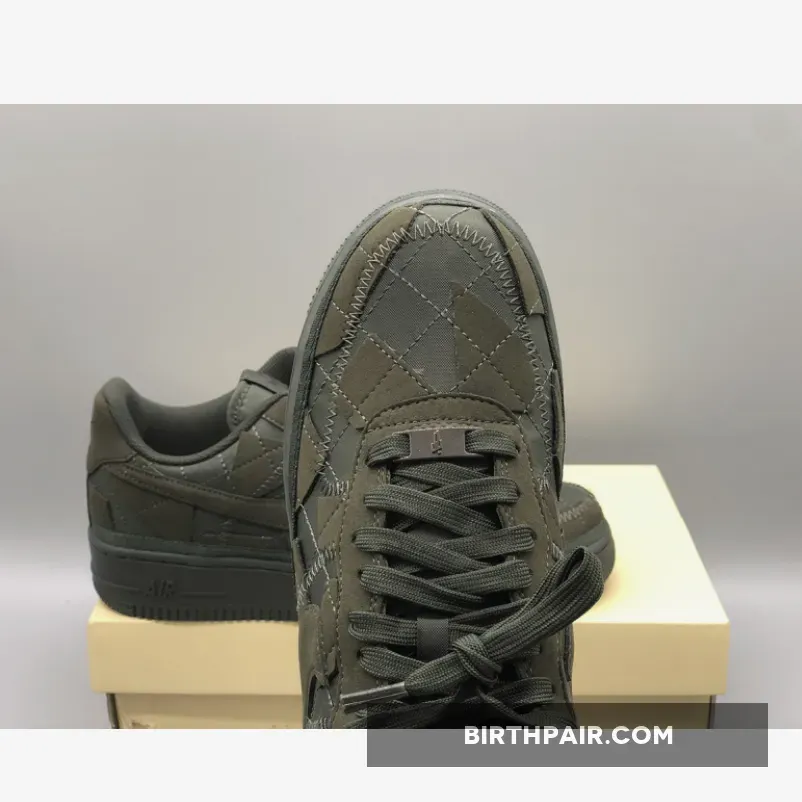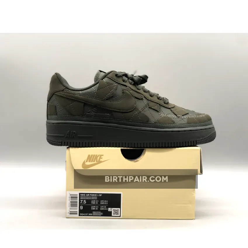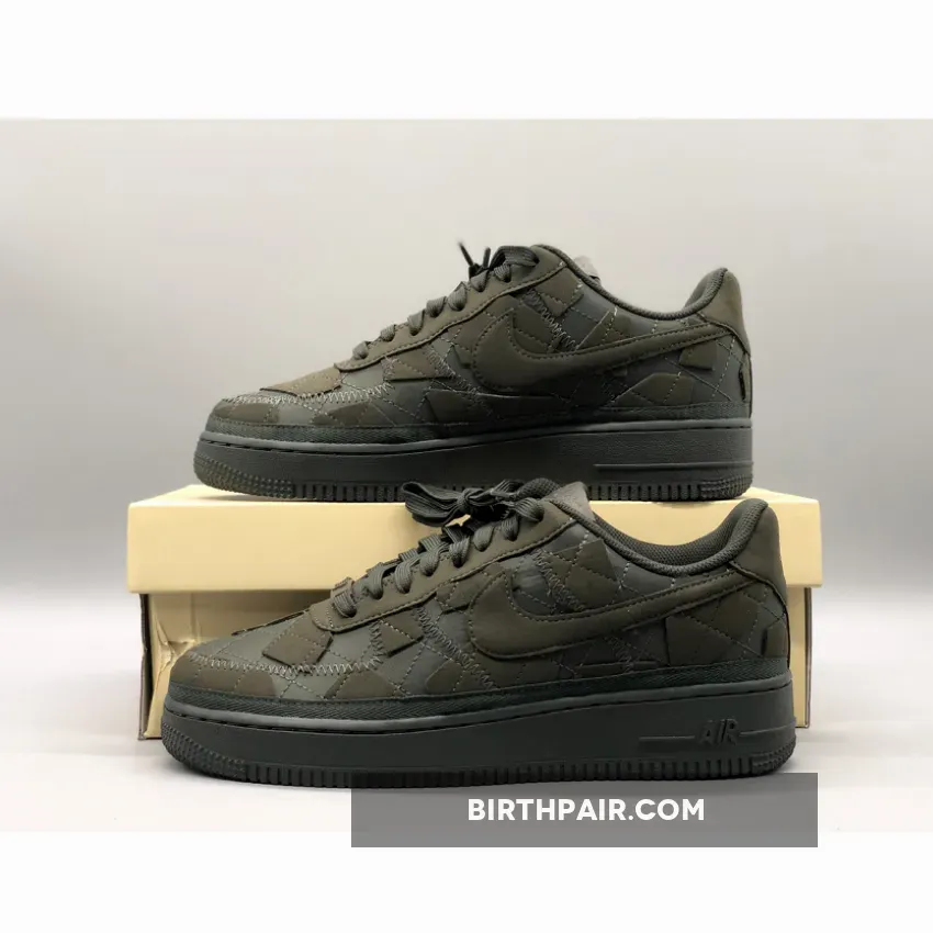 This Nike Air Force 1 Low has a quilted upper made with “Sequoia” suede, a dark fabric with a tinted green hue. The sneaker has a patchwork exterior complete with canvas and statement stitching. The shoe also features sustainable details as its made from recycled and vegan textiles.