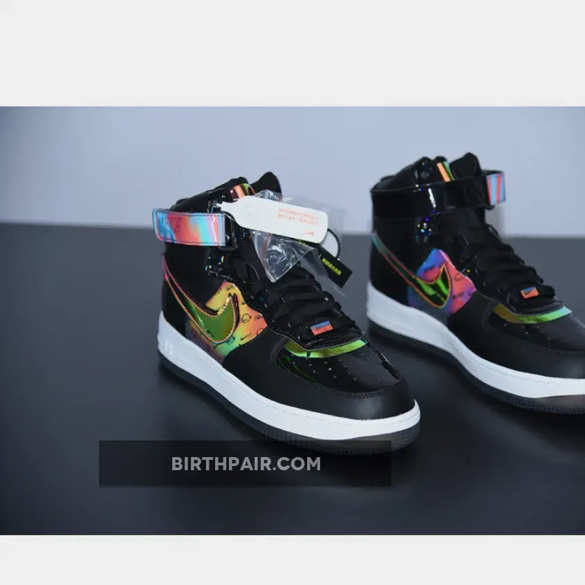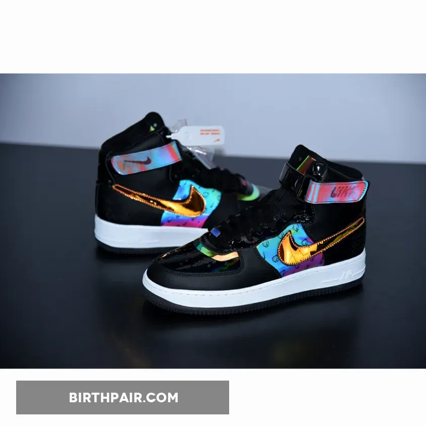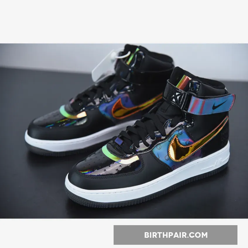 This Nike Air Force 1 High utilizes different materials which includes patent leather, velcro Swoosh logos, smooth leather and iridescent accents. Highlighting this pair is ‘Have A Good Game’ on the lateral side by the heel.