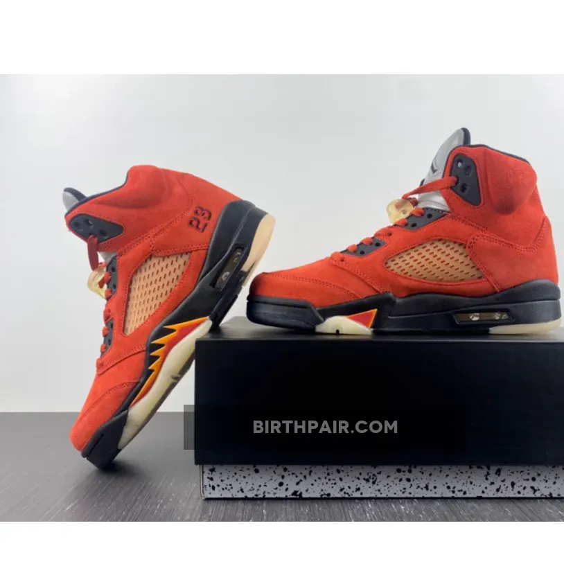 This new Air Jordan 5 colorway takes on an official color makeup of “Martian Sunrise/Black-Fire Red-Muslin-Bright Mandarin” as the upper is composed of premium Tyvek leather in the highlight reddish/orange hue.
