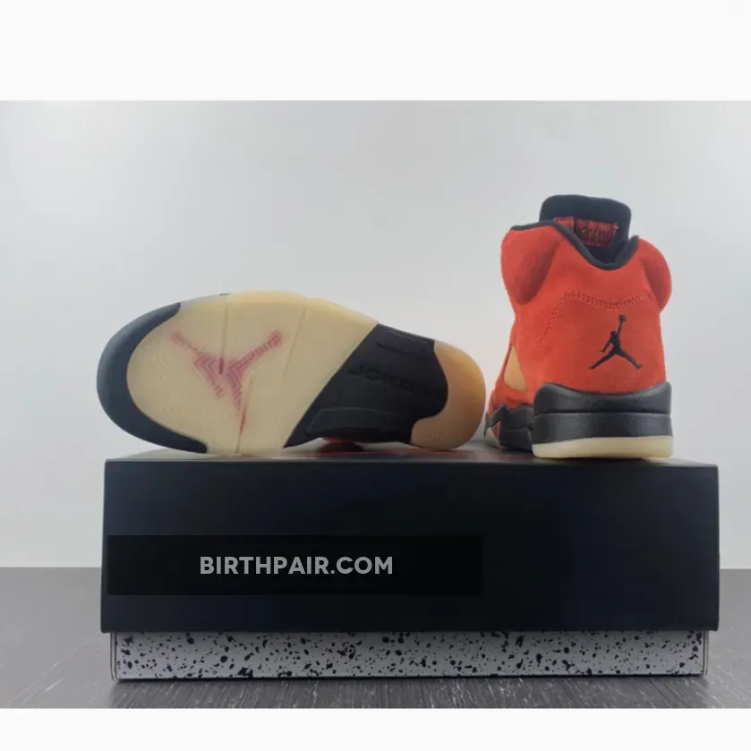 Its moniker already points to Mars Blackmon, the fictional character played by Spike Lee who has been featured in multiple commercials alongside MJ. Visually, its sultry suede red uppers and notes of black accents are reminiscent of the Air Jordan 5 “Raging Bull” — which saw a retro release in 2021.