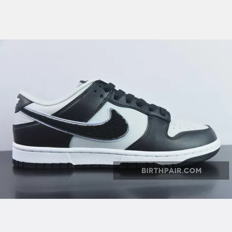 The Peter Moore-designed Nike Dunk has featured a lot of materials and looks in its 37 years of existence, from snakeskin to leopard print to a wear-away design. The latest Dunk comes with a unique chenille Swoosh that hasn’t been seen on a Dunk in a long time. Meet the Nike Dunk Low Chenille Swoosh Grey Black. This Dunk Low has a classic two-toned palette. Its leather upper has a light grey base and black overlays. The most eye-catching elements of the shoe, however, are the oversized chenille Swooshes on both the medial and lateral sides. This Dunk also shows off Grind technology on its midsoles, a design element that makes this shoe part of the eco-conscious ‘Move To Zero’ line of Nike.