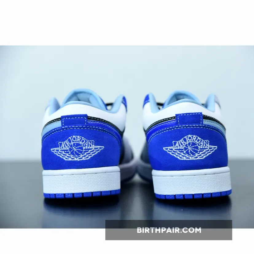 Are you ready for the Jordan 1 Low Blue Black White? A fresh new colorway of the Jordan Brand’s Nike Air Jordan 1 silhouette that’s been a fan-favourite silhouette of sneakerheads ever since 1985. As Michael Jordan’s first-ever signature basketball shoe, the AJ1 was designed by Peter Moore and initially launched in high, mid and low-top versions, with all three still popular today.Set to arrive in the next coming weeks, a detailed look at this Jordan 1 Low flaunts a mish-mash of supple suede and premium leather overlays graced with colourways of platinum white, stealthy black and azure blue. For a branded touch, Nike’s iconic Swoosh logo shoots across the lateral and medial sides in a sky blue hue, and a Jumpman logo embroidered on the tongue and wings logo on the heel completes the design.The Nike Air Jordan 1 Low Blue Black White is, without doubt, an essential addition to your AJ collection.