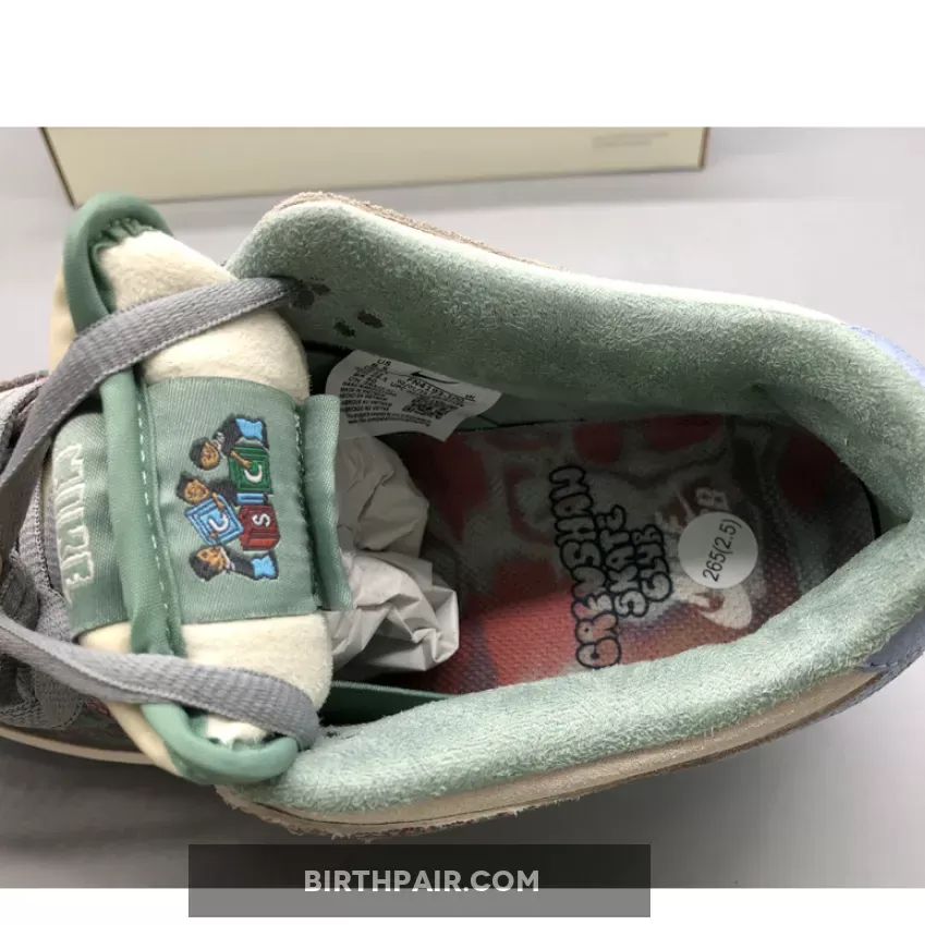 we can see the upcoming Crenshaw Skate Club x Nike SB Dunk Low boasts a clean design made from smooth suede and leather overlays featuring Purple/Seafoam print.