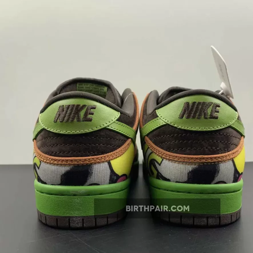 Dressed in a Safari, Altitude Green, and Baroque Brown color scheme. This Nike SB Dunk Low features a Baroque Brown suede upper paired with Altitude Green elephant print and vinyl graphic overlays inspired by De La Soul’s debut album, 3 Feet High and Rising.