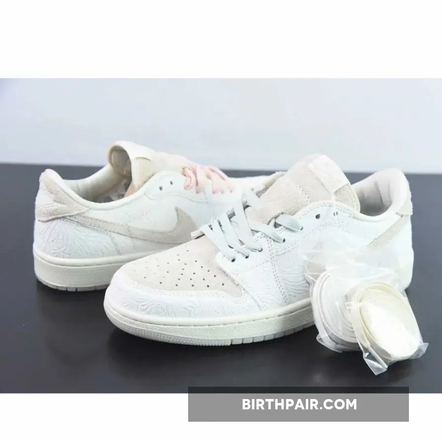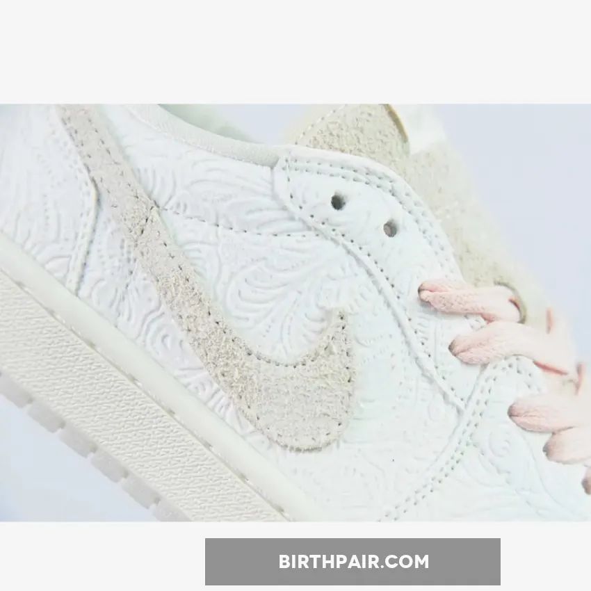 The base of the upper is constructed in a creamy white leather with an embossed floral pattern covering the entirety. The overlays are made of a shaggy suede in ‘Sail’, which includes the toe panel, Swoosh, tongue and a small section on the heel. “Give Them Flowers” labels decorate the interior, while the debossed Jordan Wings logo adorns the rear. The yellowish semi-translucent outsole features more floral details, complementing the graphics-heavy sockliners with blue floral details and a special-edition logo.The pair also comes with an additional set of laces.