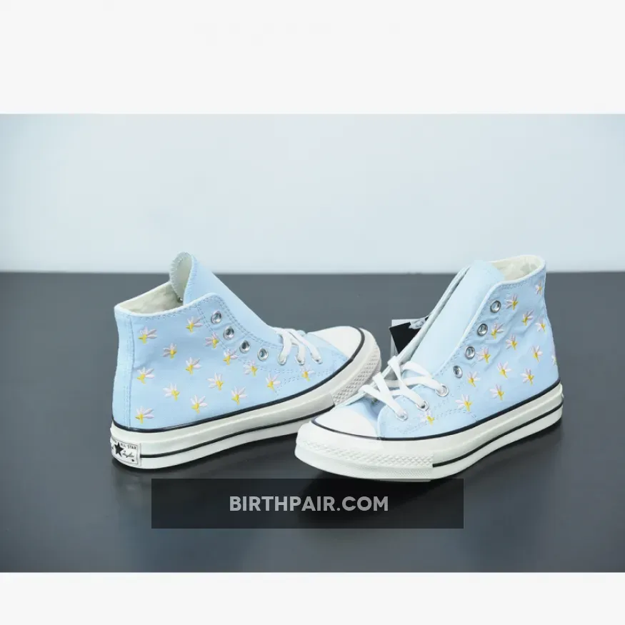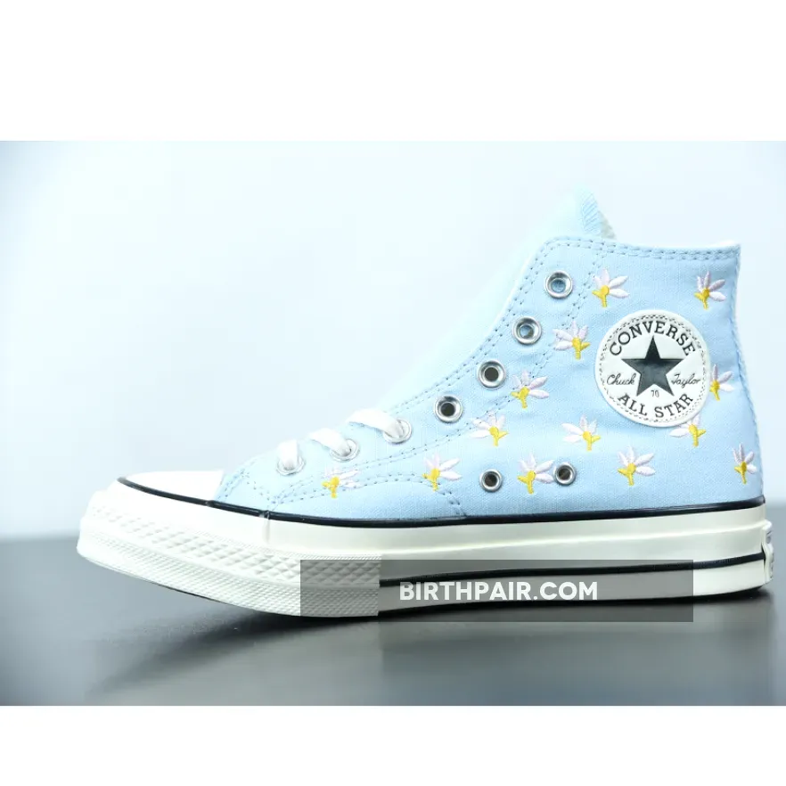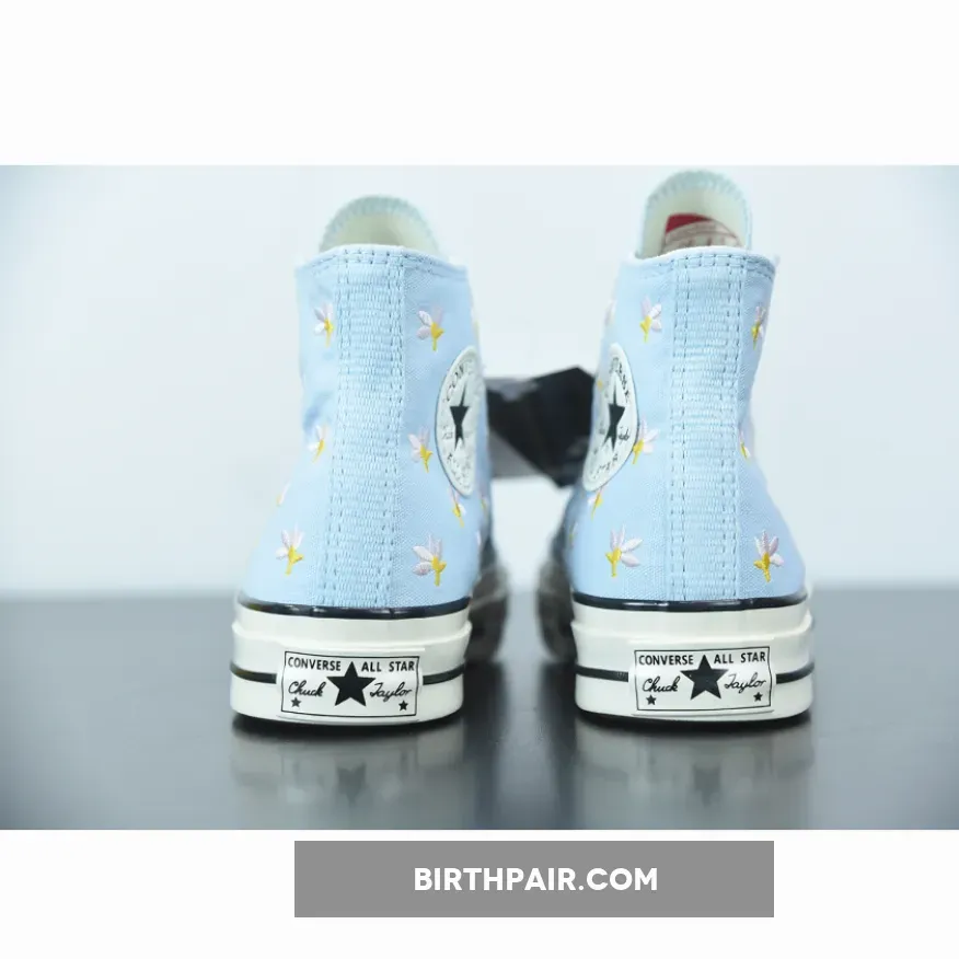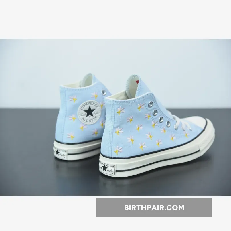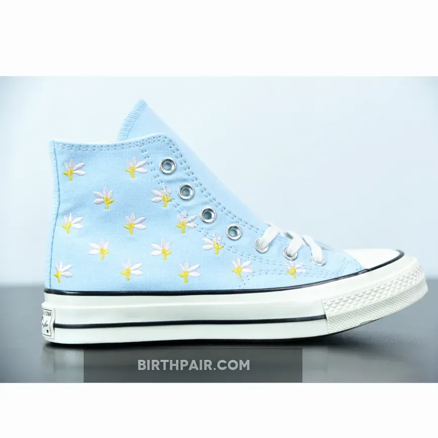 Freshen up your sneaker rotation for summer with the super-cute Converse Chuck 70 High Floral Print Chambray Blue. Adorable embroidered flowers dress up the iconic Chuck 70 for a fresh new look.