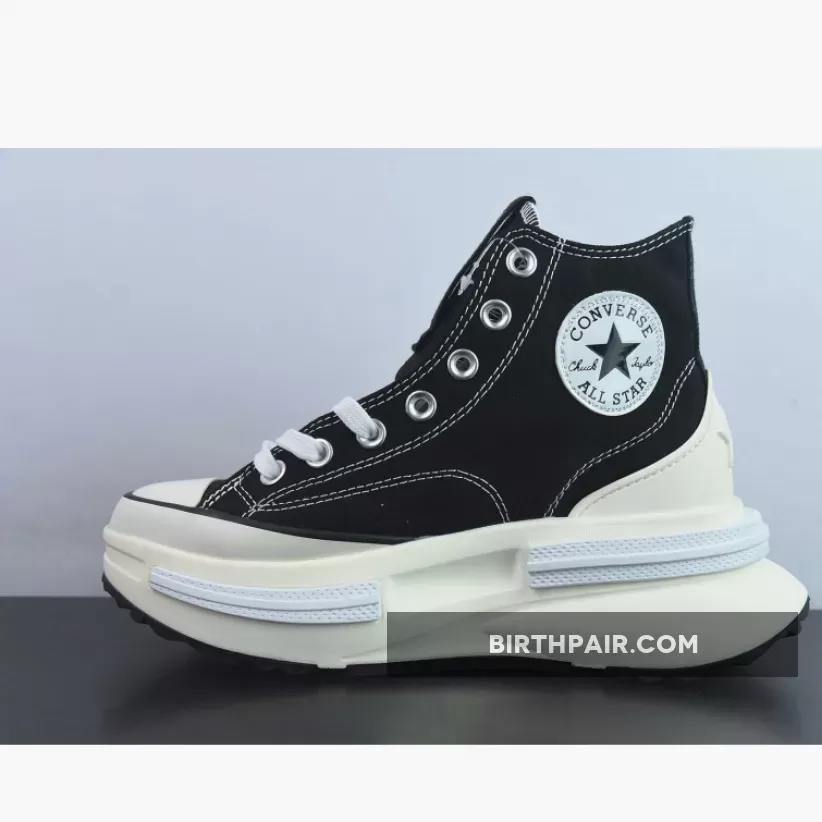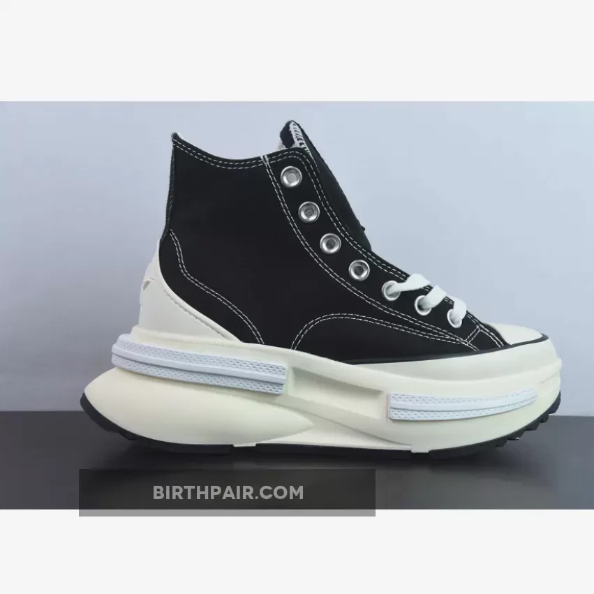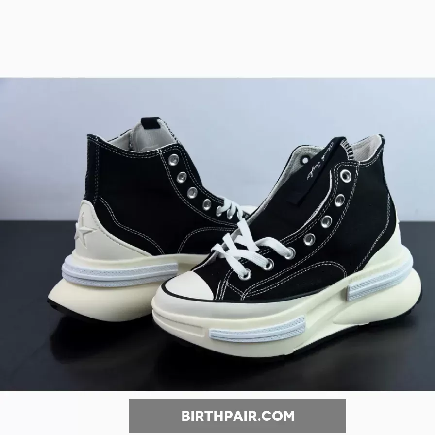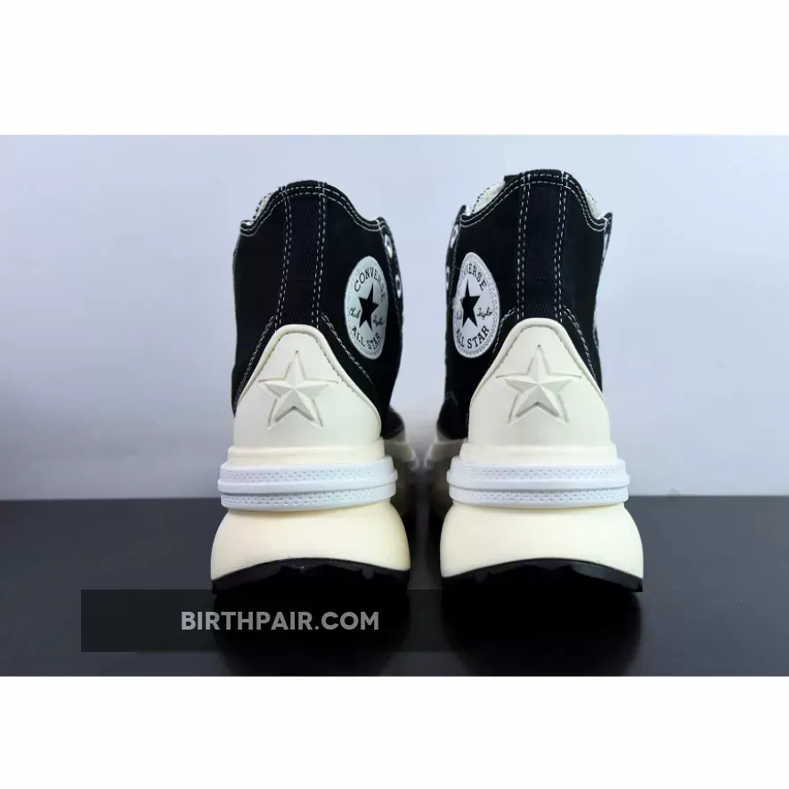 The newly-debuted Converse Run Star Legacy that takes off from the much-beloved Run Star Hike is quickly rolling out new colourways. Introducing the Converse Run Star Legacy CX Black Egret. The upper of this Run Star Legacy is just like the Run Star Hike, all-Black canvas with traditional Egret-coloured laces and white faux Converse All Star-branded badges on the medial mid-panels.