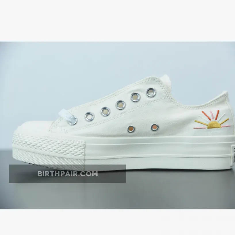 Platform Chucks deliver! Vibrant embroidery & comfy design brighten up summer style effortlessly. #ConverseSummer #PlatformVibes
