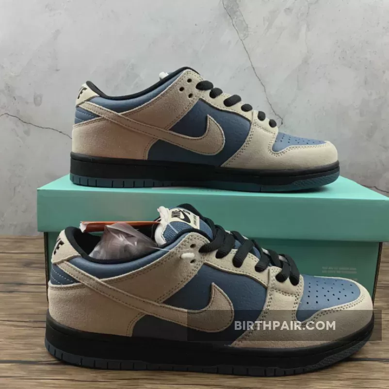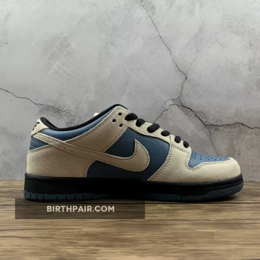 The Nike SB Dunk Low Pro offers a performance skateboarding shoe that’s also great for everyday wear. The unique sneaker design is flanked with a color blocking theme that features a dark Thunderstorm blue leather base with creamy suede overlays and black accenting the laces, padded collar, and midsole. Ready to perform on the board, the construction of the Nike SB Dunk Low Pro skews sleeker versus an ultra padded silhouette and comes with a significantly thinner tongue.