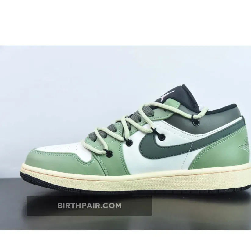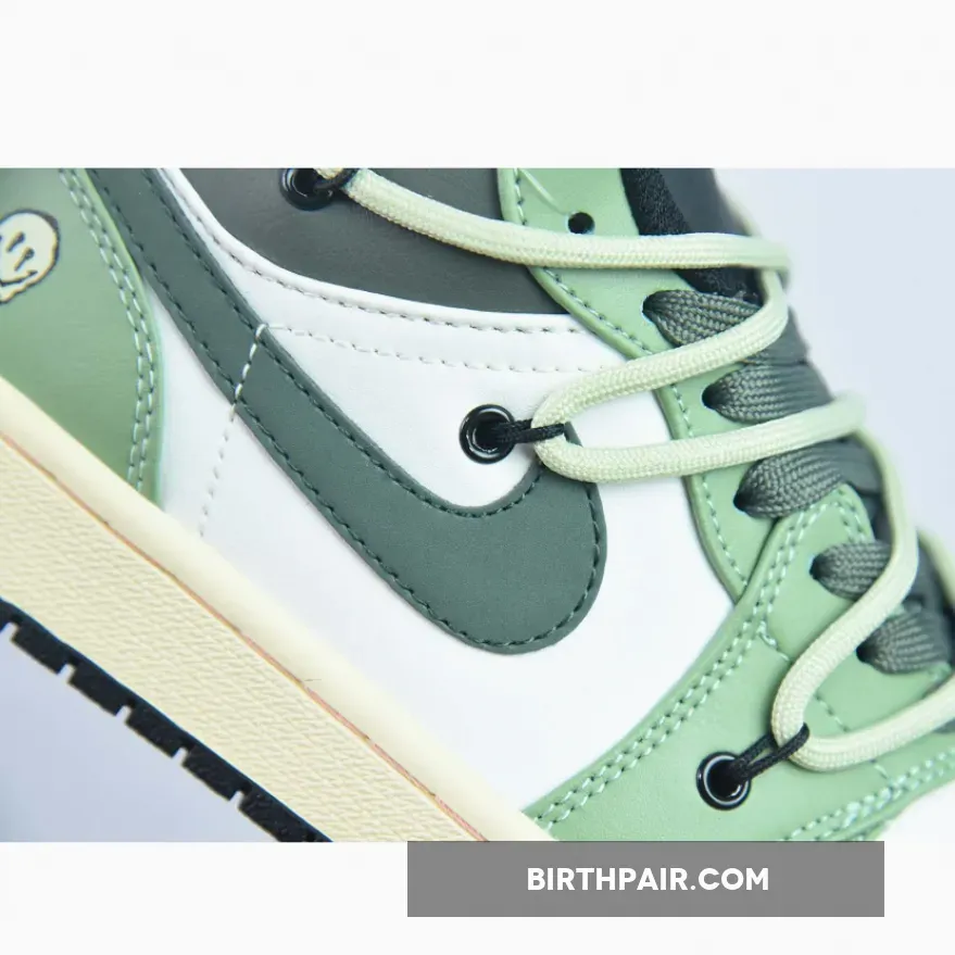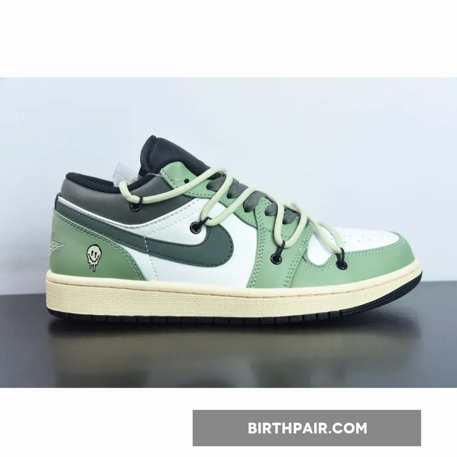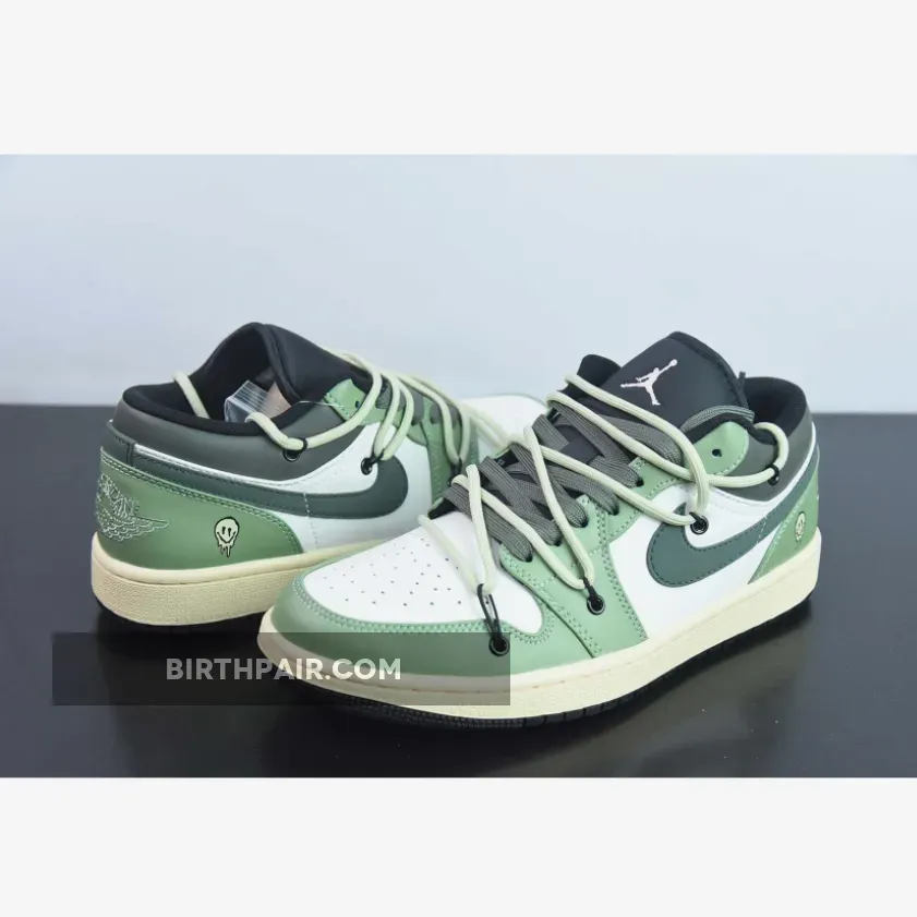 Find Quality Custom Air Jordan 1 Low White Black Green For Sale and more on www.birthpair.com.