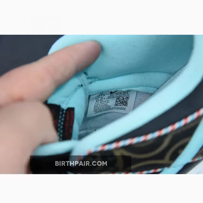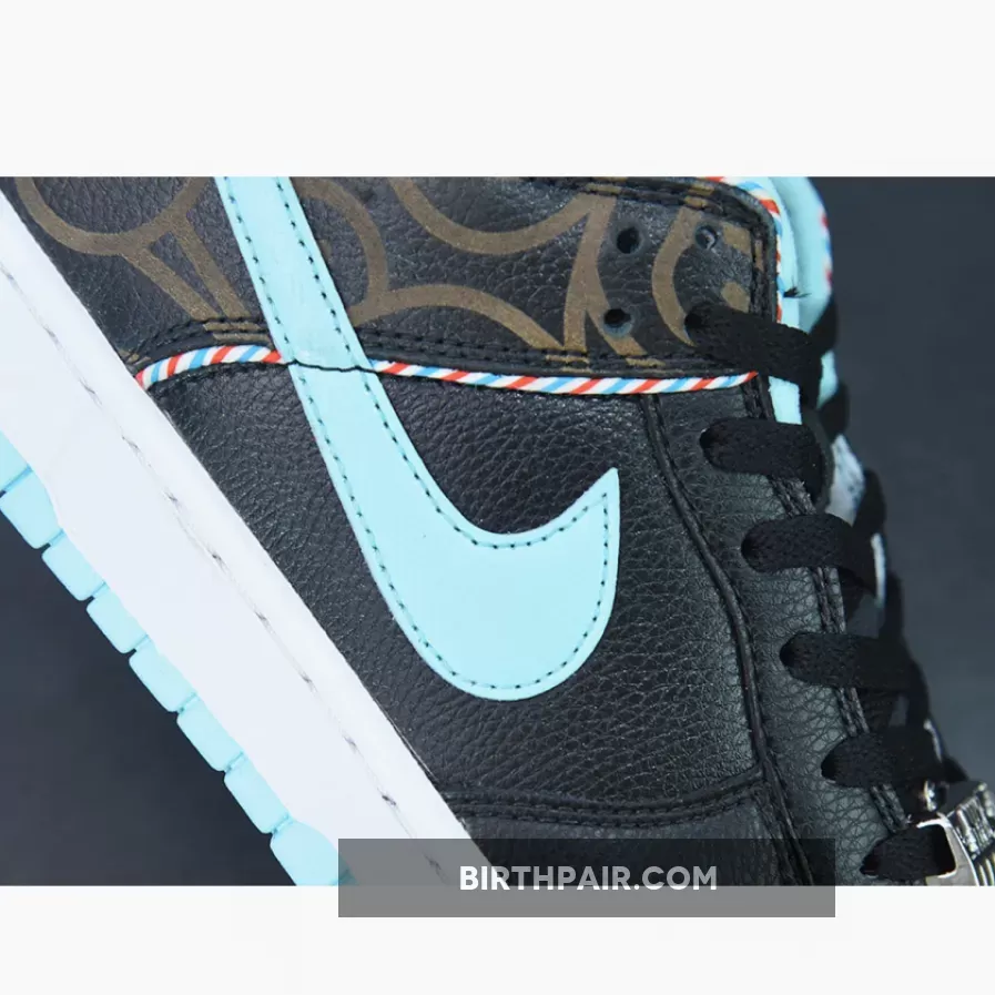 The Nike Dunk Low “Barbershop” features an all-black tumbled leather upper with hues of light blue throughout. Additionally, the offering includes white, blue, and red molding mimicking traditional barbershop poles. Highlighting the pair are mismatching lace tips, a clip blade doubling as lace dubraes, and red branding on the tongue. Elsewhere, graphics of hairstyles appear on the back-end of the pair along with light blue Nike Checks.