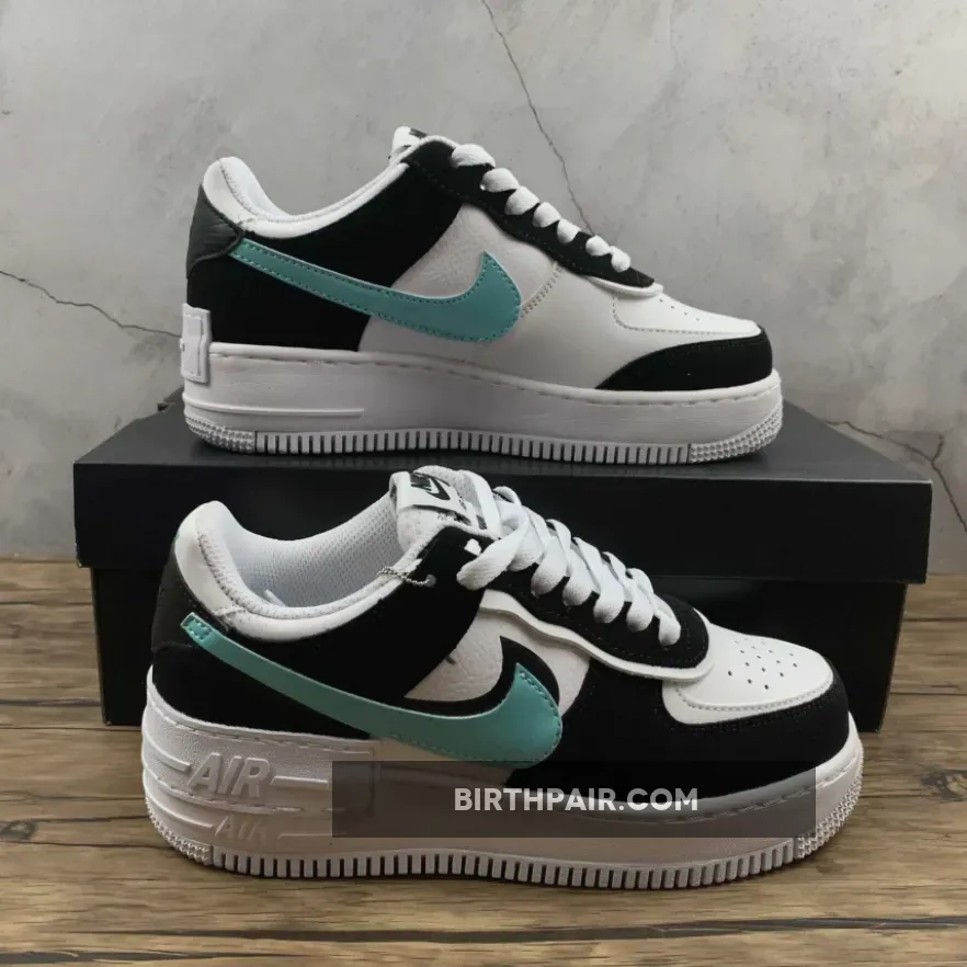 This white, black and blue Air Force 1 Shadow looks fresher than ever in this monochrome colour palette with bright accents of blue that bring a bold flash of colour to the upper. White leather covers the base overlayed with black panels around the toe cap and heel adding a stark contrast.