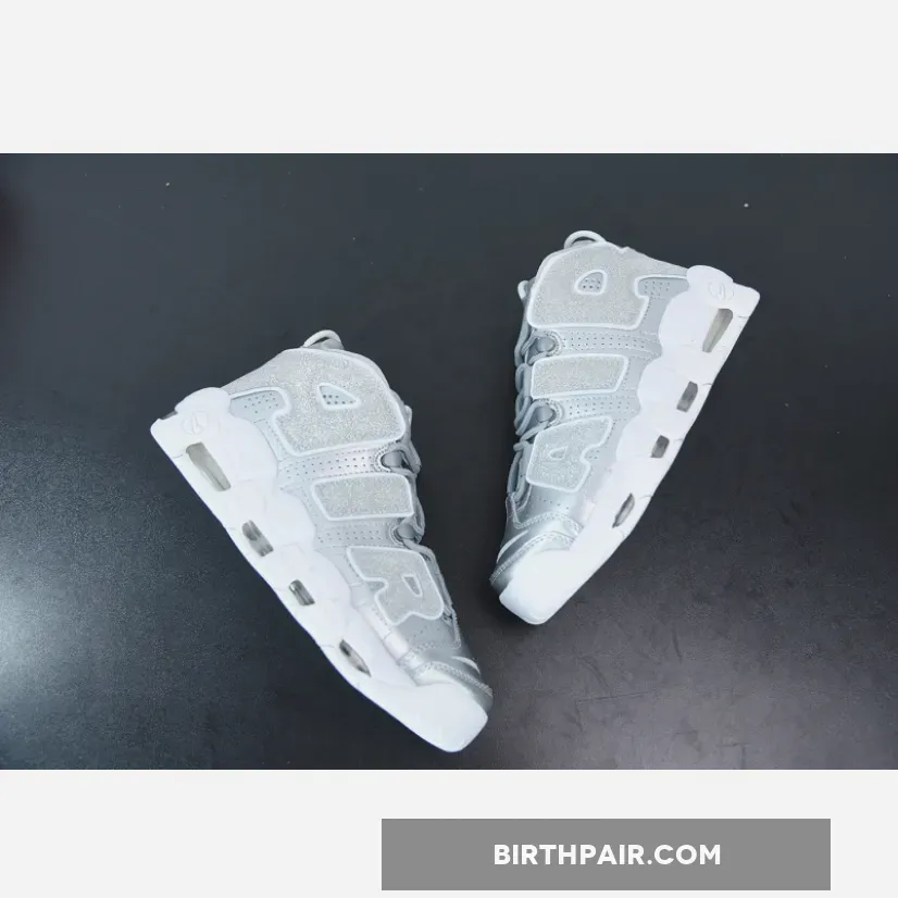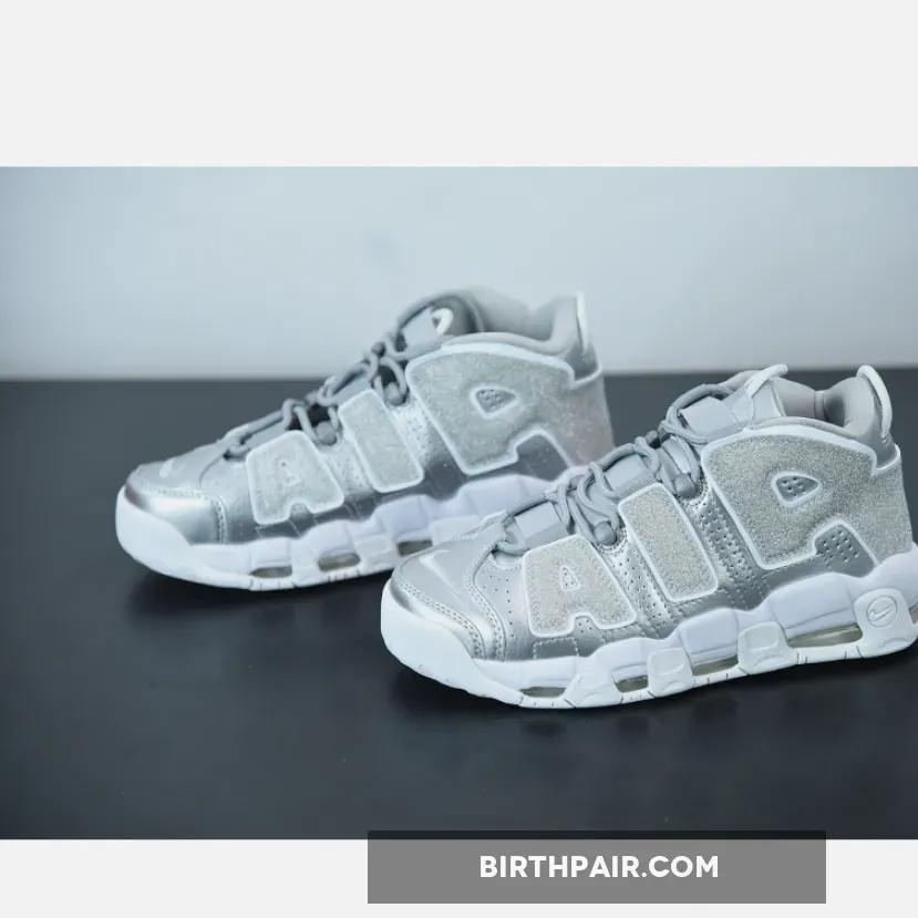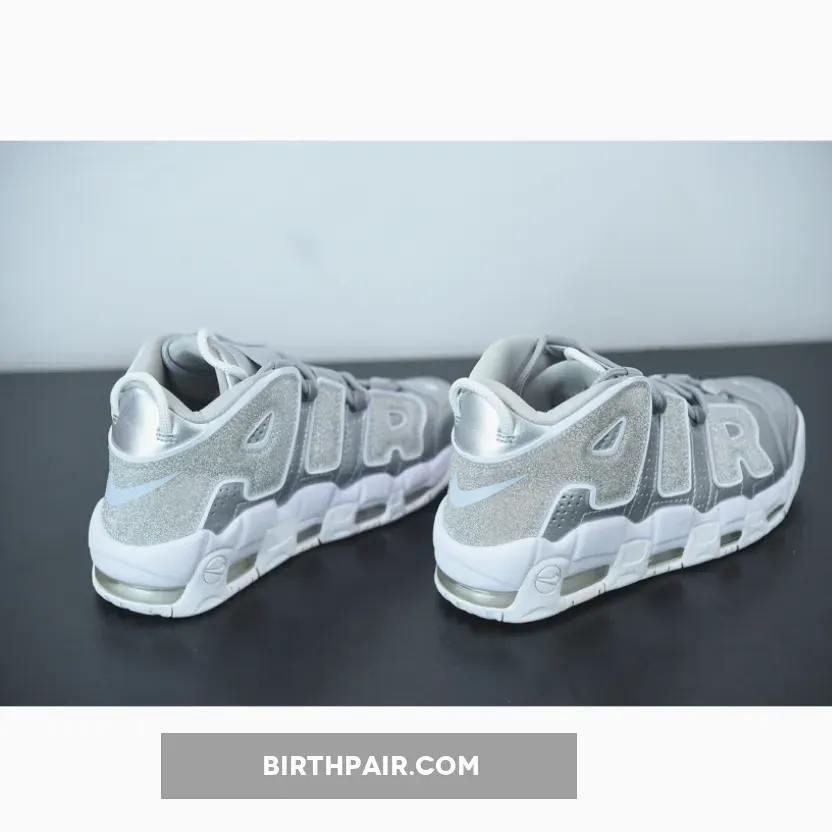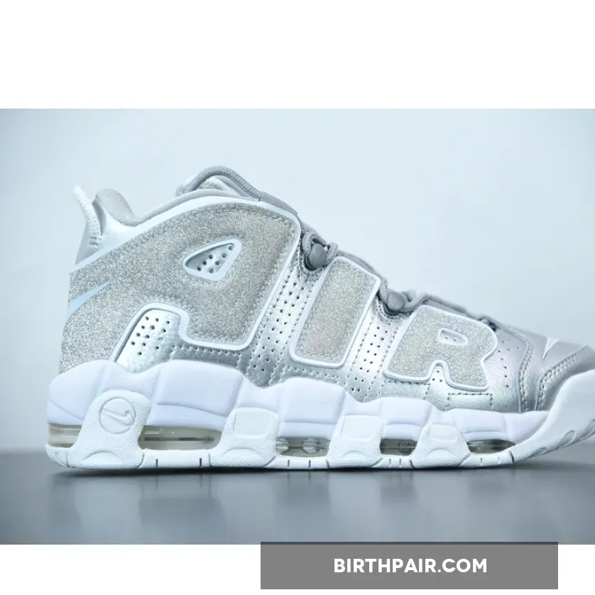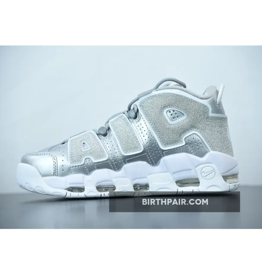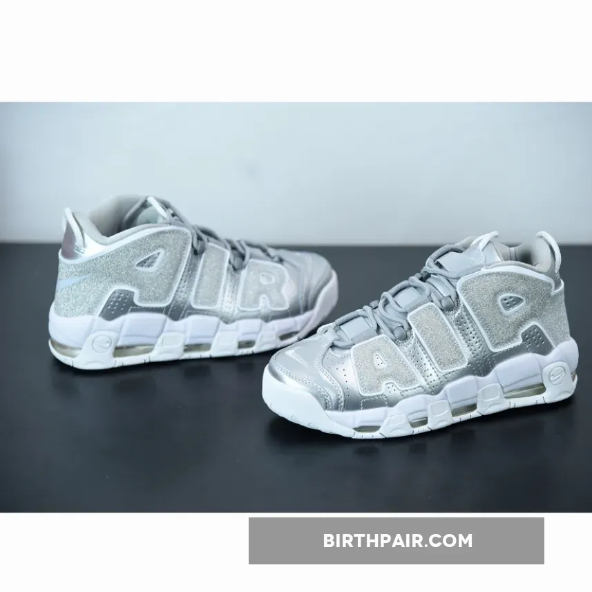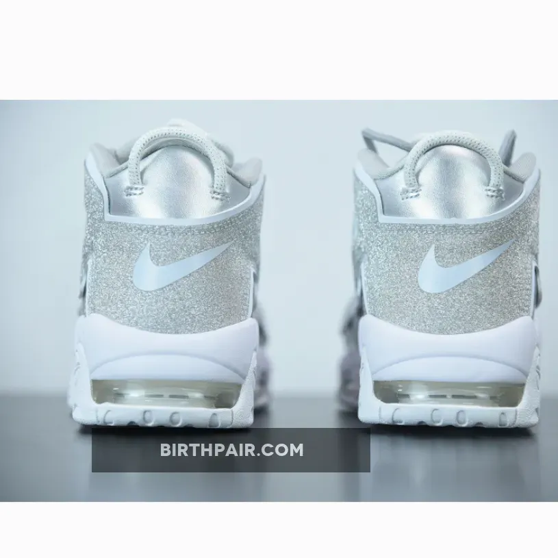 nike uptempo silver and white,