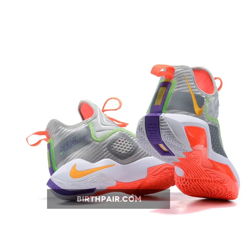 While not officially associated with Bugs Bunny, this upcoming colorway carries similar color characteristics that point to the classic “Hare” theme recently seen on the Air Jordan 6, but championed by the Air Jordan 7. Easily the most vibrant rendition we’ve seen in the model’s young lifespan, it forms its woven upper with a steel grey hue which serves as the backdrop for mustard yellow hits to accent through the Swooshes and throat, as well as exposed green stitchings that squiggle on both side walls. Further complements pop out through its bright red midsoles which also happen to feature green speckles, as well as tiny amounts of purple that touch on the miniature forefoot Swooshes and lace locks