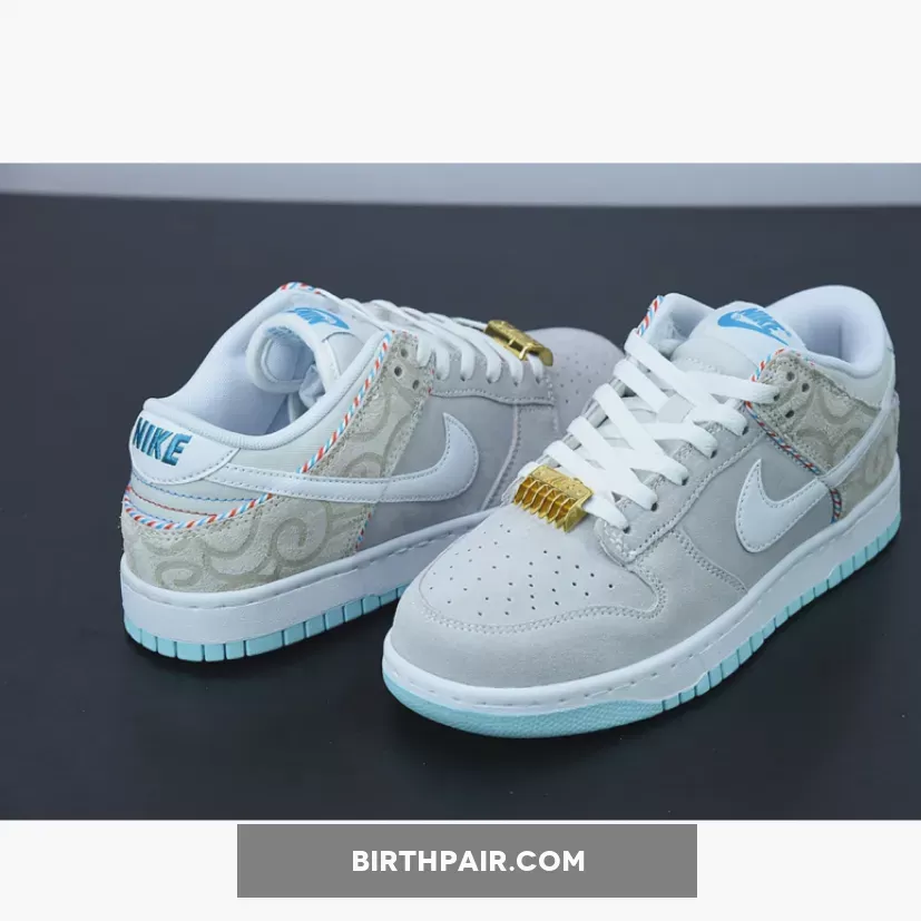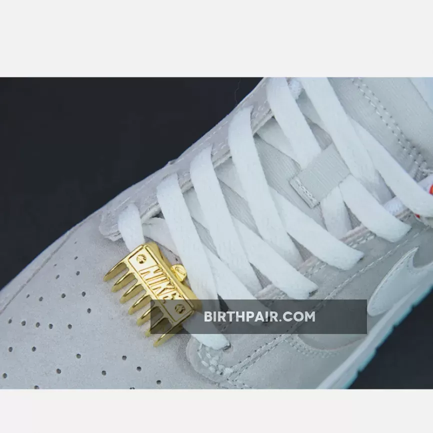 An unusual theme for a Dunk, but exciting all the same. The Nike Dunk Low White Barber Shop is one cool Dunk Low that celebrates the small community within the local barbershops, and the culture that comes with them.Grey suede is always a winner on a Dunk Low, so this Barber Shop Dunk is guaranteed to fly off the shelves. The clip blade lace dubraes add some personality to the sneaker, whilst the red, white and blue trim reminds us of the poles outside the shop. Nike branding at the top of the tongue and on the heel follow suit in the same hue.To cop the Nike Dunk Low White Barber Shop, use the links on this page and don’t forget to stay up to date with more Nike news and releases over on Our Store Supplier app.