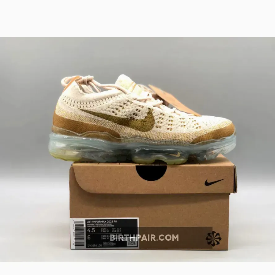 Solid color scheme on the Air VaporMax 2023 Flyknit. Love the combination of tan and olive hues. Flyknit is comfy & breathable, while the VaporMax sole offers excellent responsiveness. Quality feels premium. Highly recommended for casual wear or daily runs. #Nike #VaporMax #Flyknit #Sneakers