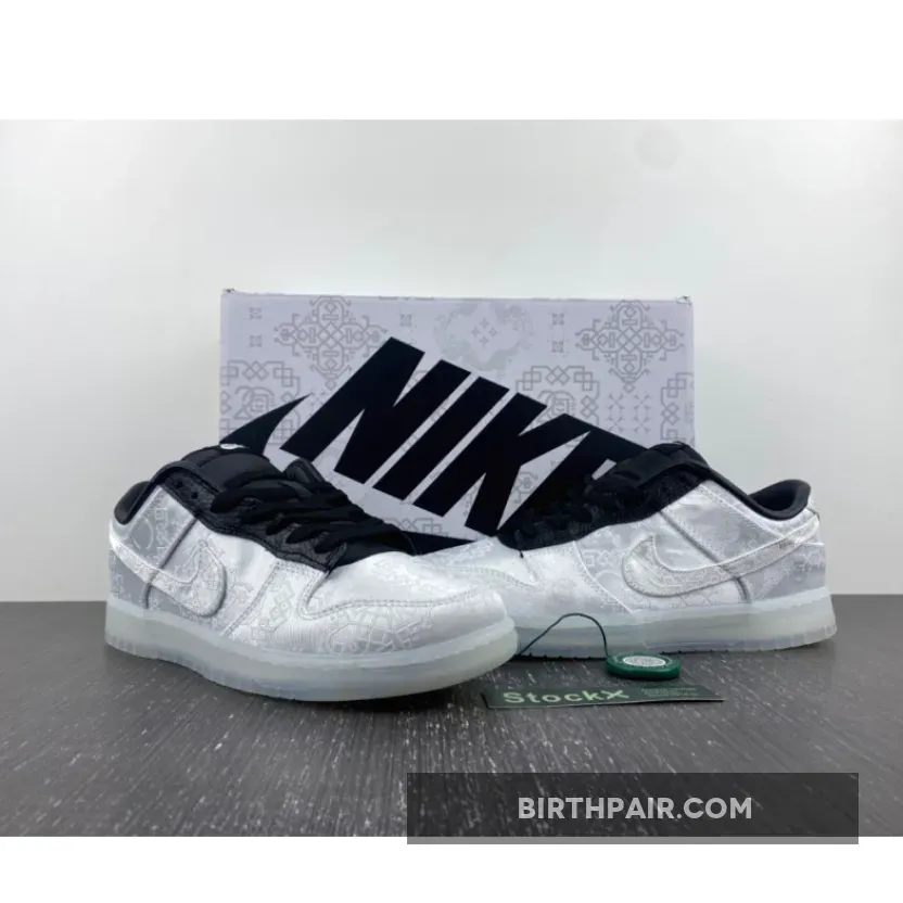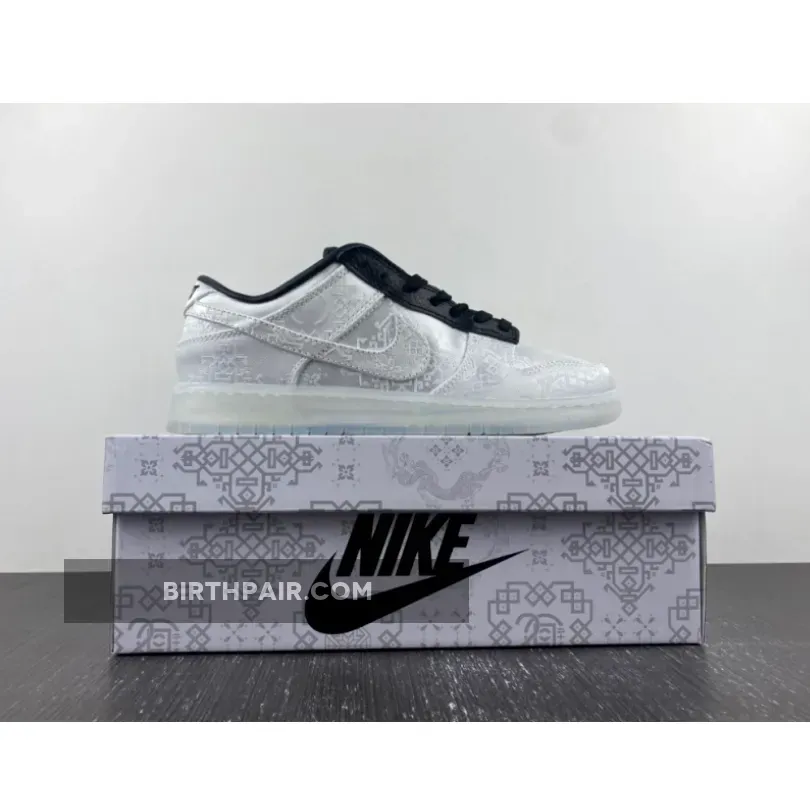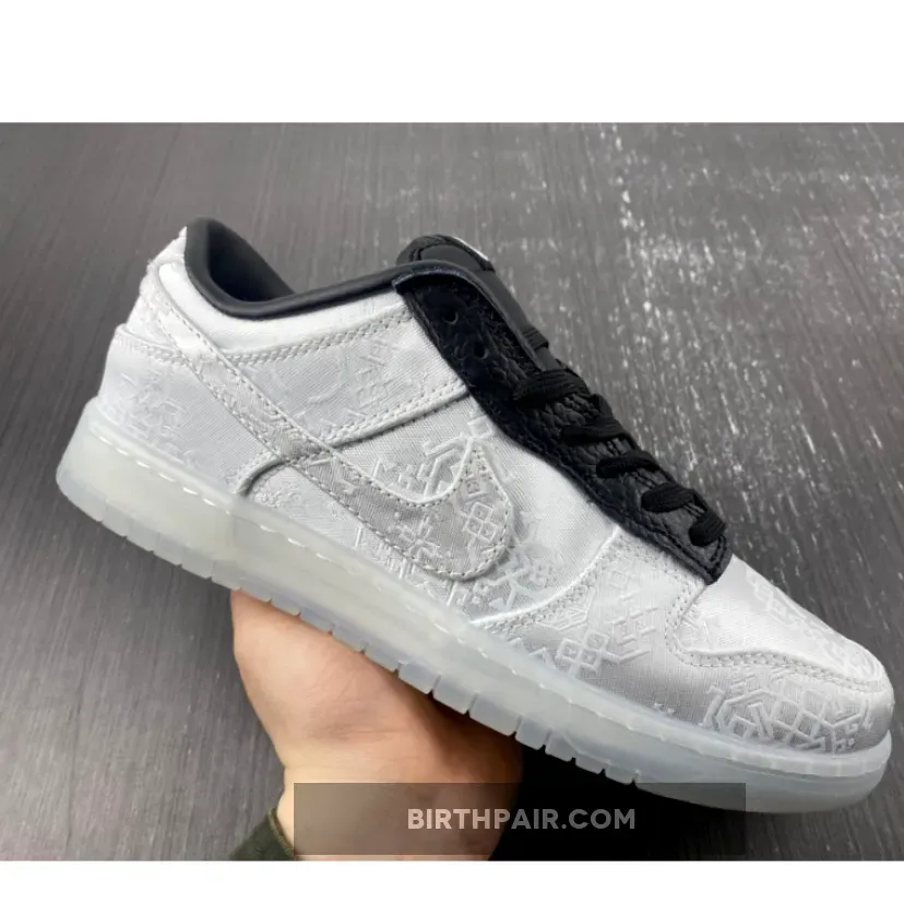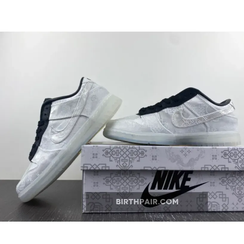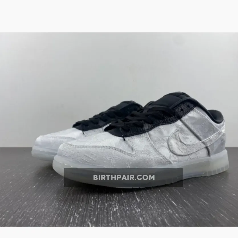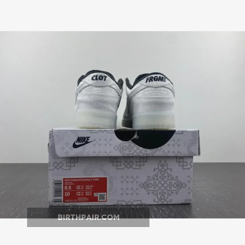 The trio of cultural powerhouses link up again for what could be 2023’s best Dunk. CLOT and fragment have long navigated a similar field of footwear, with the two even working on an Air Force 1 edition back in 2019. Now the effort shifts to the Dunk Low, emerging with a quasi-silk tooling that brought a premium edge to their previous collaboration.A white silk-like material drapes the upper, with a repeating pattern giving an extra level of intricate detailing. Matching the high level of expectations is the leather lining, ensuring these feel like a quality collaboration while on feet. Co-branding is printed onto the left insole, with CLOT’s 20th Anniversary logo only centimetres above fragment’s infamous double lightning logo. The collaborative presence is also made clear on the heel, with black embroidery beckoning out the name of the two footwear monoliths. Underneath lies a milky rubber sole, which may possibly be glow-in-the-dark, but only time will tell if that is truly the case. Make sure to stick close by Our Store Supplier where we can give you more news on the CLOT x fragment x Nike Dunk Low “Black White” release.