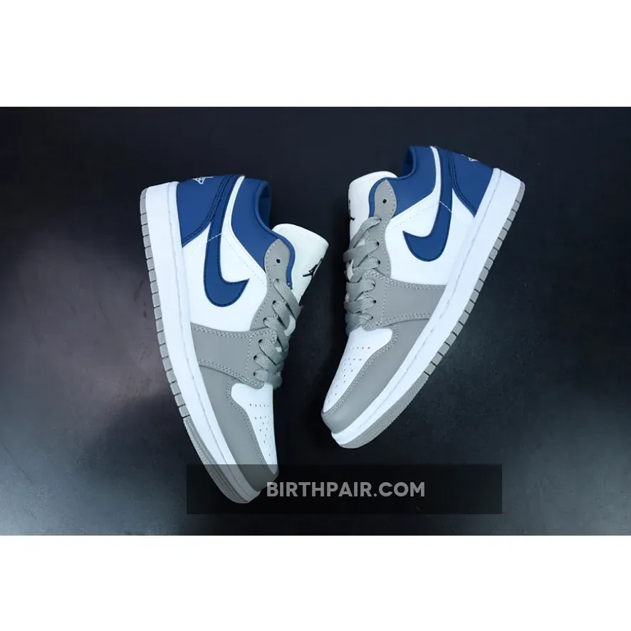 Unarguably the piece to wear for breezy casual days, the Air Jordan 1 Low White Grey Blue is designed to put a stylish spin on your everyday ensembles. This pair’s simple upper — featuring a smooth white leather base, supple grey forefoot overlays and cobalt blue accents at the back — exudes effortless elegance. As an easy-to-style sneaker, you can match it with any summer ensemble.
