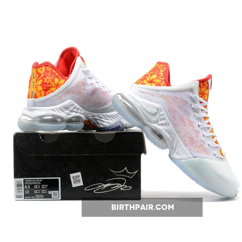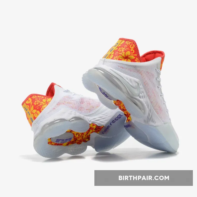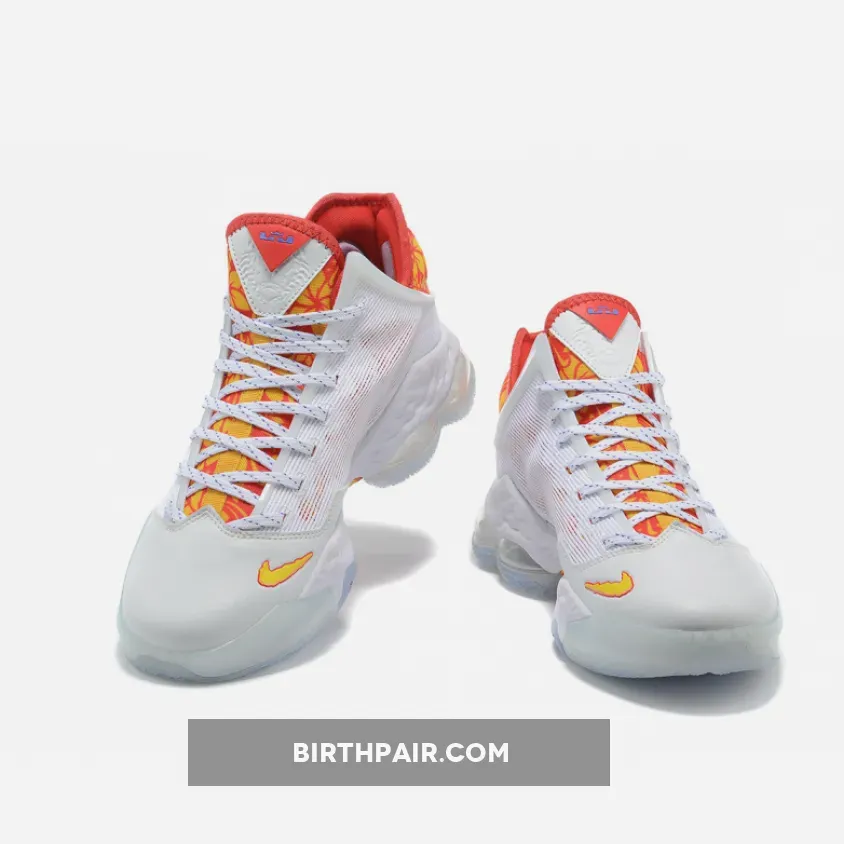 The Flintstone x Nike LeBron 19 Low ‘Magic Fruity Pebbles’ brings color-changing technology to LeBron James’ signature low-top. When exposed to light, the clear Max Air unit that sits under the heel shifts to a vibrant shade of purple, nodding to the predictable effect that colorful cereal has on a bowl of milk. The upper continues the breakfast theme with milky white leather and mesh, along with a flaky red and yellow print throughout the collar and inner sleeve. ‘Magic Fruity Pebbles’ is embroidered on the interior side of the left tongue, while mismatched sockliners feature Fred Flinstone on the right shoe and a cartoon LeBron on the left.