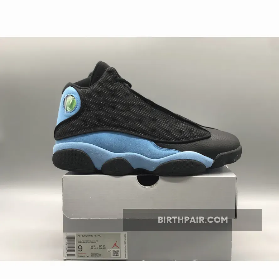 This new colorway of the Air Jordan 13 comes dressed in a Black, University Blue, and White color scheme. Fairly simple in design, the sneaker’s upper is done in predominantly Black which consists of the 3M reflective mesh panels, leather toe box and nubuck tongue.