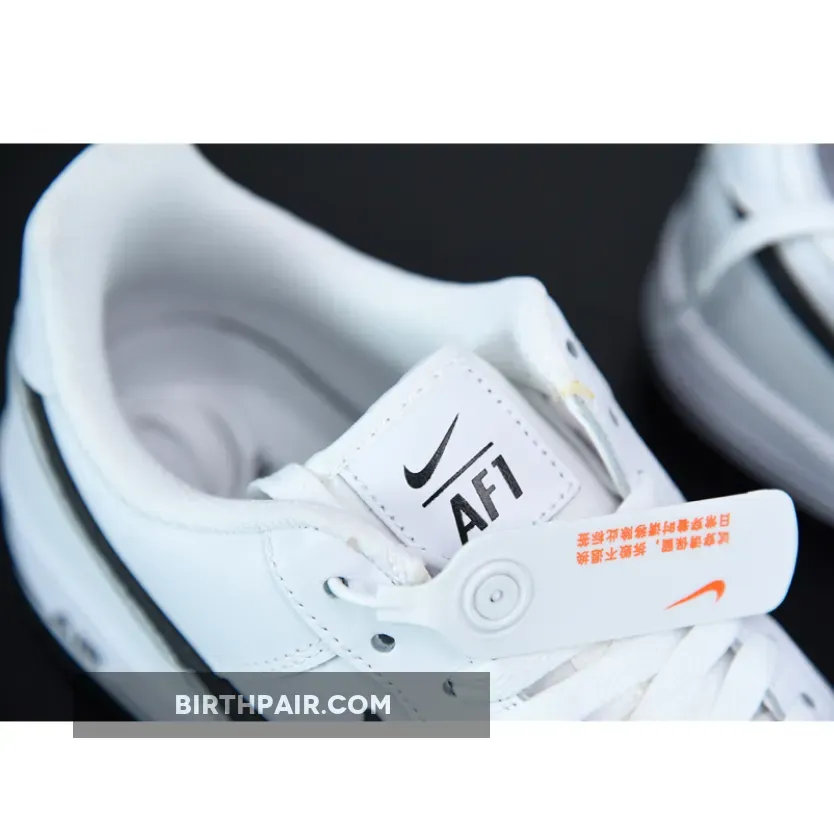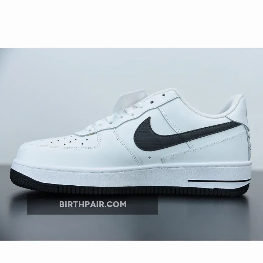 this Nike Air Force 1 Low comes covered in White leather across the base and an added overlay around the heel. In addition, Grey textile covers the Swoosh along with Black branding and unique stitching on the heel.