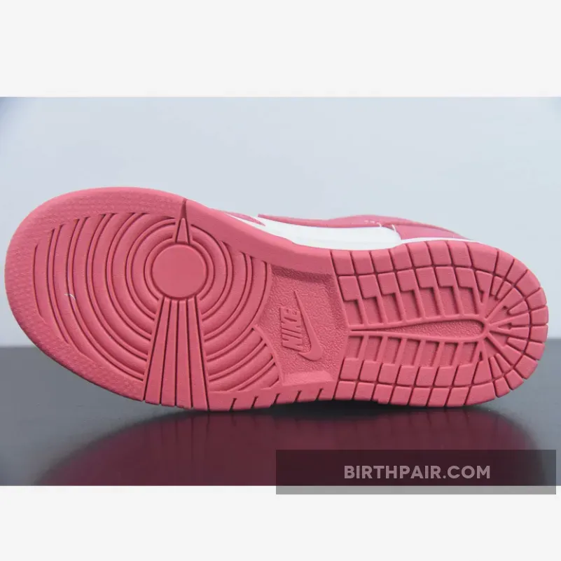A romantic and vibrant colourway dresses up a new Nike Dunk Low. Meet the Nike Dunk Low GS Gypsy Rose. Coming in a smaller size, this shoe has a colourless base for its upper. The overlays are all in tumbled leather in the titular “Gypsy Rose” shade, from the toe cap, the mudguard, the eye stay panel, the collar-to-heel-counter panel, the heel tab and the signature profile Swooshes on both the medial and the lateral sides of the shoe. The laces are also in a matching hue.