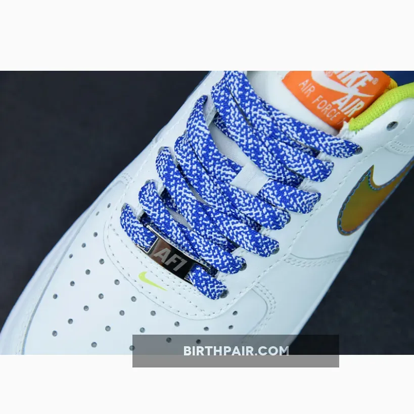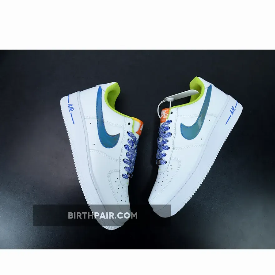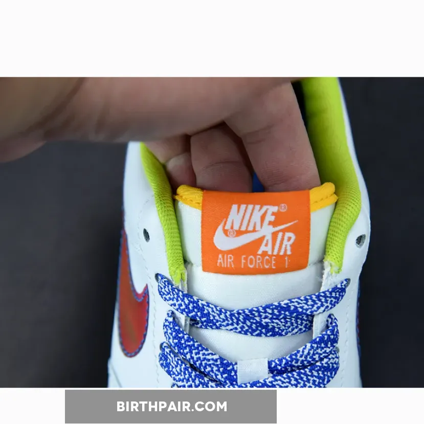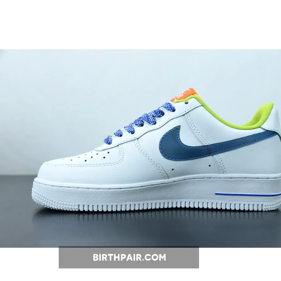 Starting off with a pristine smooth white leather construction all throughout the upper, this Nike Air Force 1 Low is then hit with various punches of color which include a bright green inner liner, blue and white laces, orange tongue tags, and blue Nike branding on the heels.