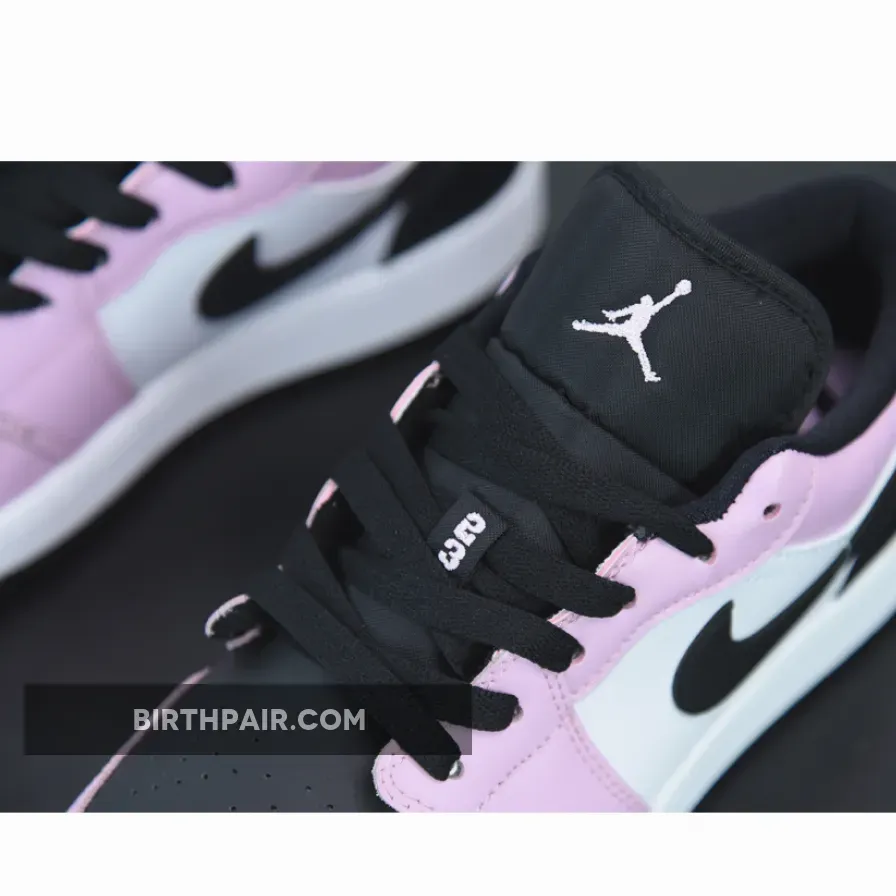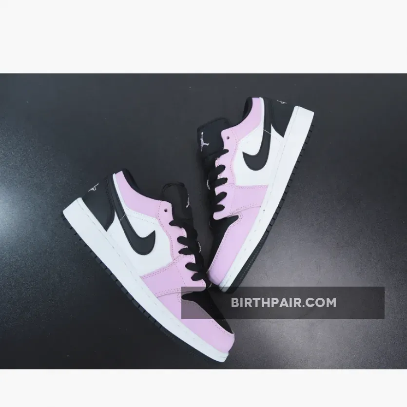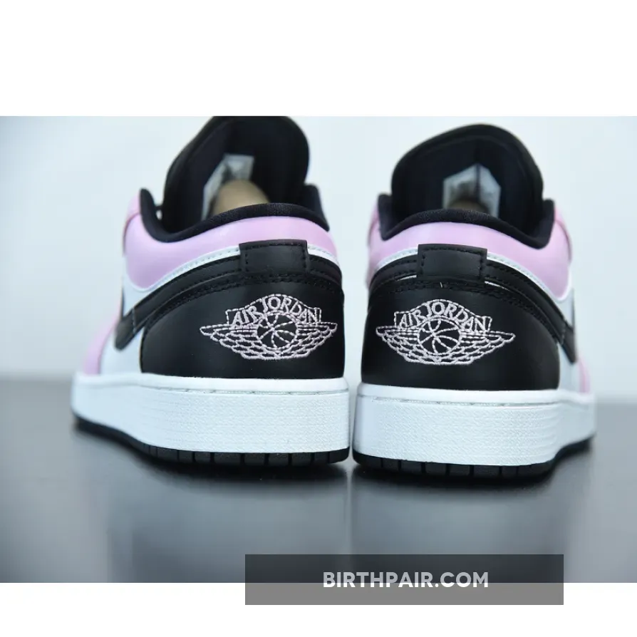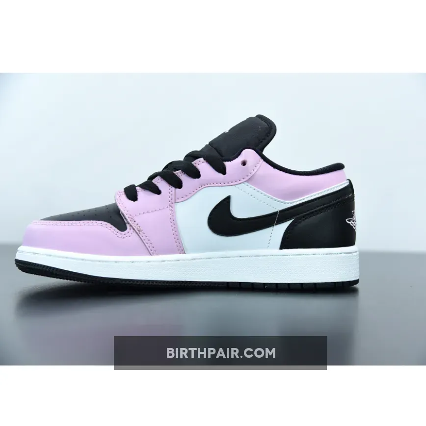 This offering of the low-top Air Jordan 1 features White leather on the side panels with Pink overlays.