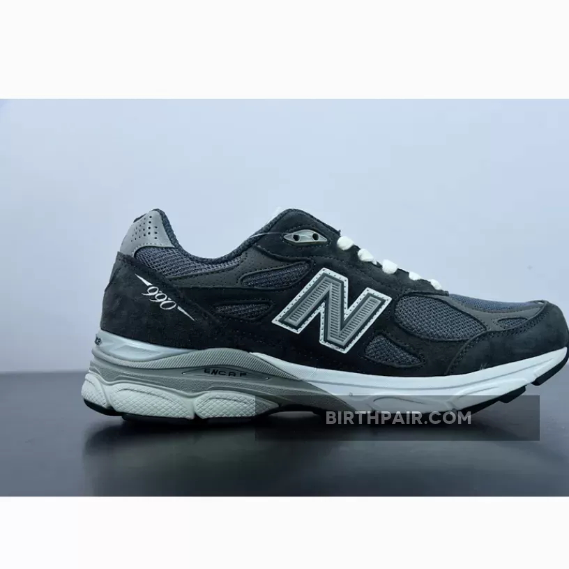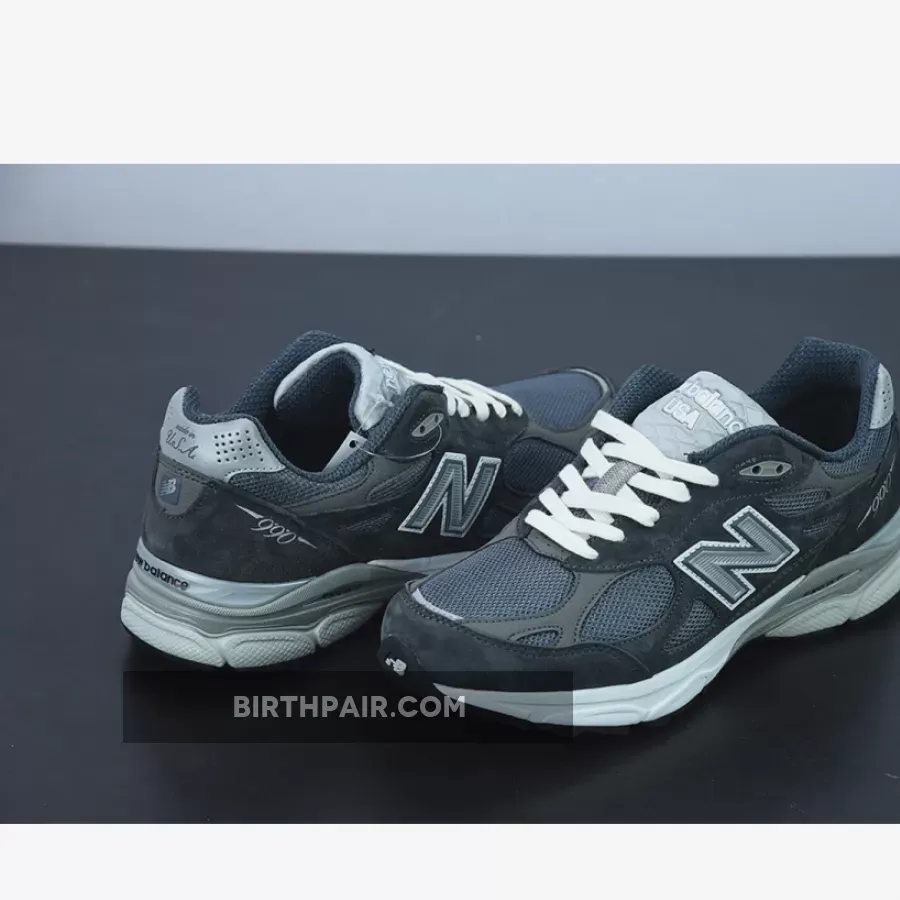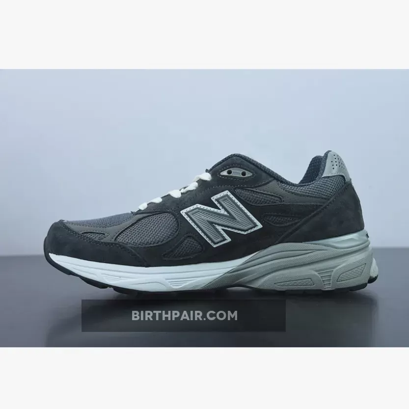 This offering of the New Balance 990v3 comes dressed in a similar color blocking as the “Genesis” pair. It features a Dark Grey suede and mesh upper with Cream-colored laces and Grey “N” logos and detailing throughout.