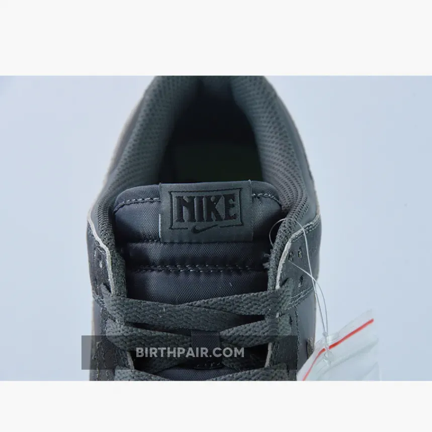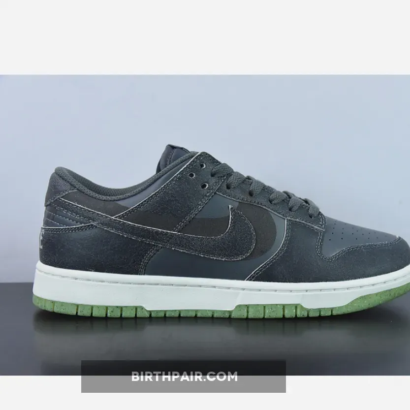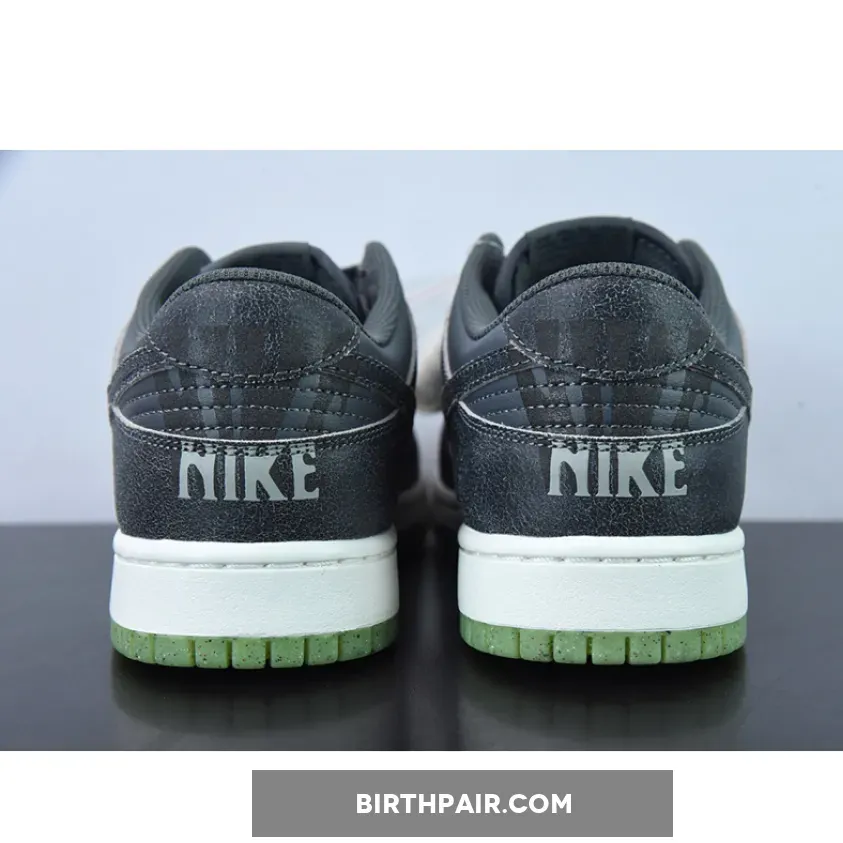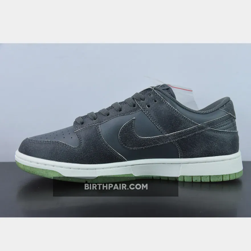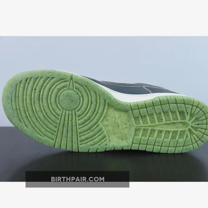 The Nike Dunk Low Swoosh Shadow Iron Grey is made out of a mix of canvas, suede, and leather materials, coated in an iron grey, phantom and scream green color palette.