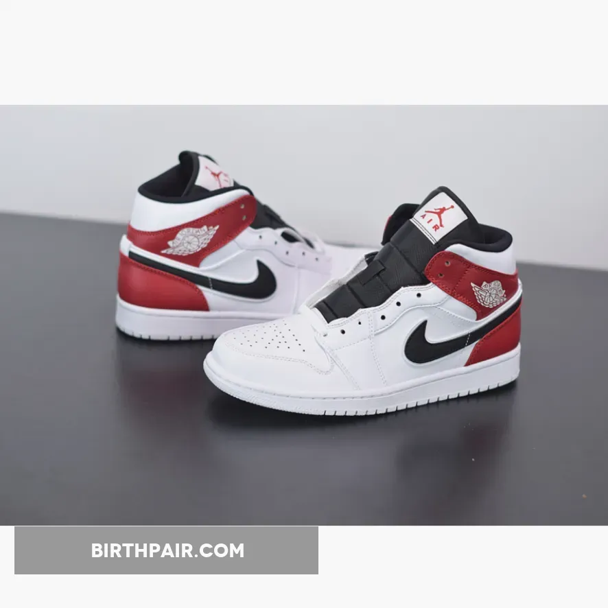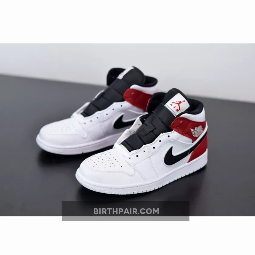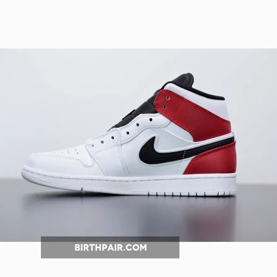 It features a clean White leather upper with Black appearing on the Swoosh, nylon tongues and inner lining. Red is used on the ankle overlays and heels completed with a summer-ready White rubber sole.