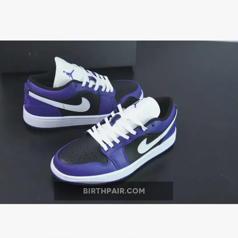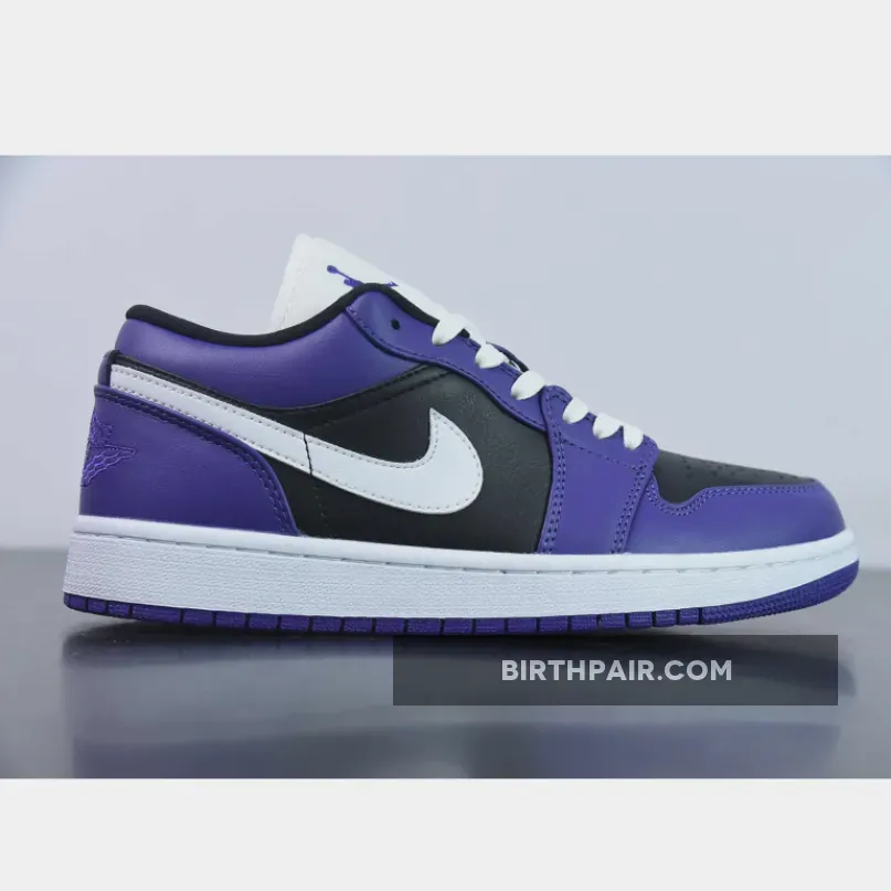 The Jordan 1 Low Court Purple puts a refreshing take on a classic colourway. The Jordan 1 is one of the most coveted silhouettes of all time amongst sneakerheads and recently the low-top iteration has seen a resurgence in hype due to several high-profile collaborations. This pair uses Nike’s signature colour blocking to reverse the standard colour pallet, showcasing a black base colour, purple accents and a white Swoosh and midsole. They’re crafted from high-quality leather and the panels are neatly stitched together to form a stylish and sturdy upper. The toe box is perforated for ventilation in classic AJ1 style, with branding consisting of a Jumpman at the tongue and Jordan Brand’s iconic wings logo embroidered onto the heel.
