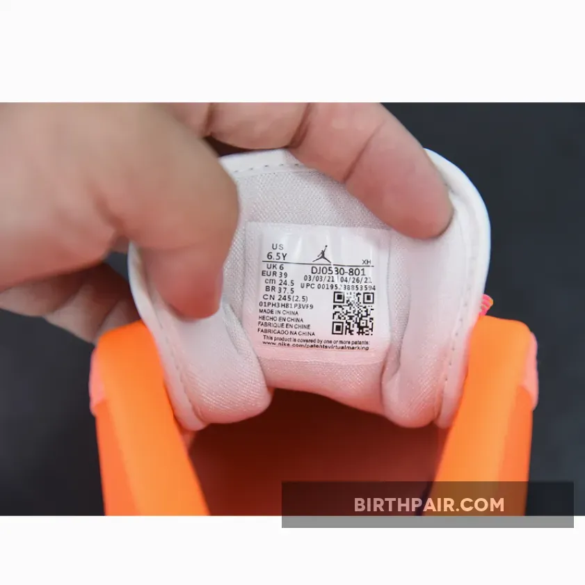 Here, the GS audience gets early dibs. It arrives with a youthful colorway, clad in hits of hot pink through the outsole, lace toggle, and extended pulls. Elsewhere, the color appears again in a much lighter shade, matching better the multi-colored laces and the hits of orange that dress both the Swoosh and heel. A white base of leather, then, sits underneath, preventing the palette from becoming too tonally exhausting.