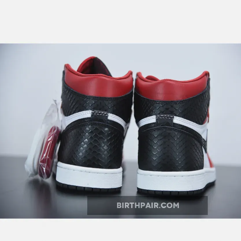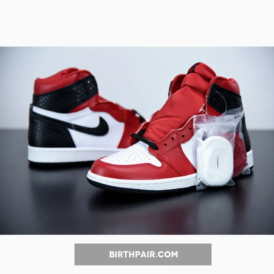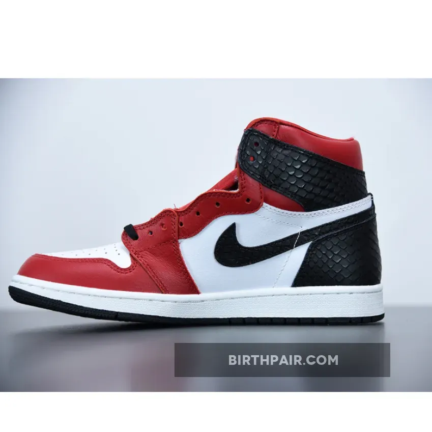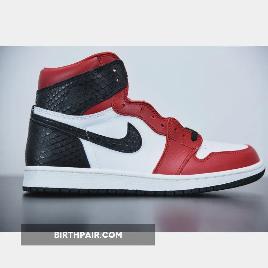 Dressed in a Gym Red, White, and Black color scheme. This Air Jordan 1 has a similar look to the OG “Chicago” colorway built with satin and snakeskin textured material.