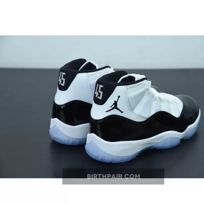 this rendition of the Air Jordan 11 Concord comes with the very same high-cut patent leather overlay found in the OG version from ’95. the heel swaps out MJ’s “23” motif for “45,” an homage to the jersey number he briefly wore after returning from retirement number one.