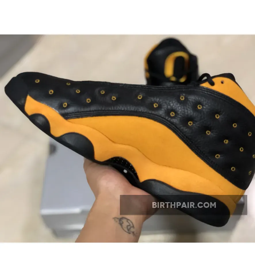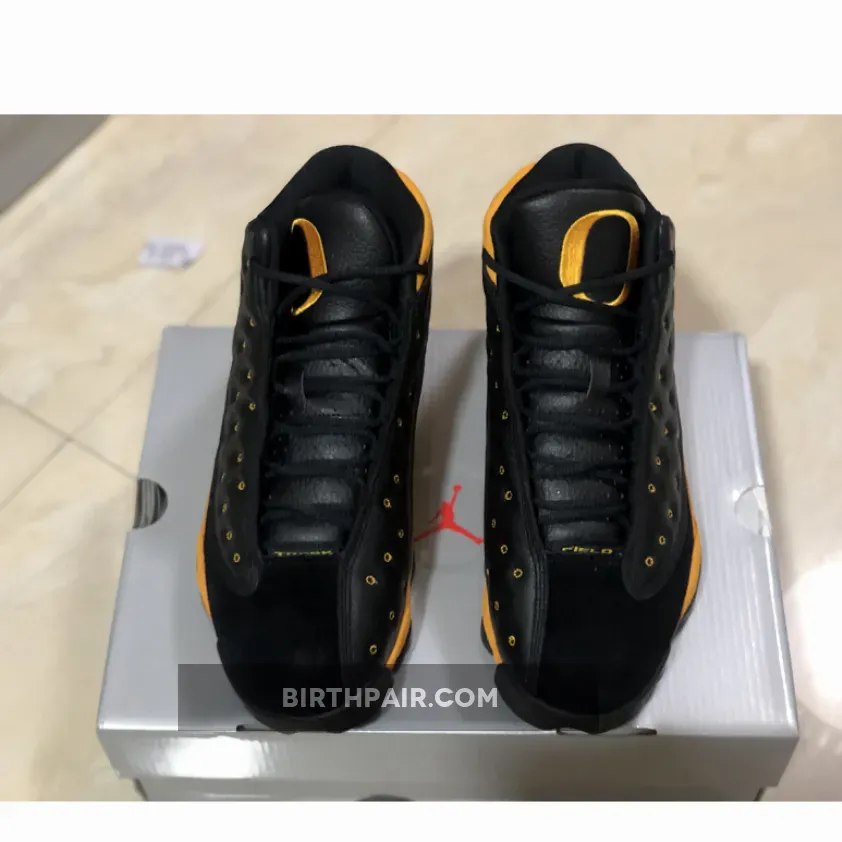 Dressed in Oregon’s Black and Yellow color scheme. This Air Jordan 13 Oregon Ducks PE comes constructed with a leather upper and nubuck on the toe box. The words “Track” and “Field” appear on the lower tongue label, while the schools’ “O” logo covers the entire top tongue. The Jumpman hologram is replaced with the Oregon’s Duck logo as well as on the outsole.