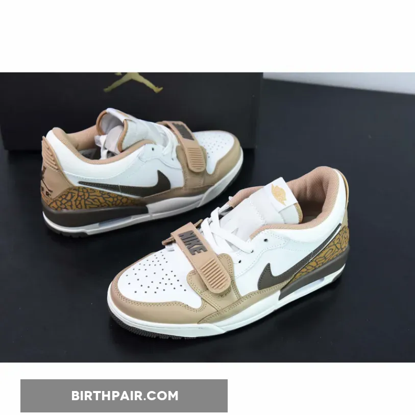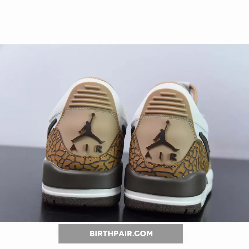 Decadent hits of dark chocolate are concentrated along the Swoosh and tread, while a wood-tinted elephant print emboldens the heel overlay, much like its Air Jordan 3 counterpart.