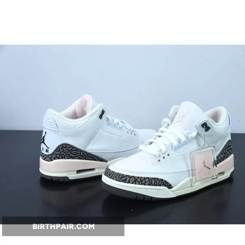 “The women’s Air Jordan 3 Retro ‘Neapolitan’ enlivens the legacy silhouette with pastel pops of color. The mid-top carries a white tumbled leather upper with signature elephant-print overlays in Dark Mocha. Jumpman branding decorates the tongue and back heel in contrasting pink and brown hues.Kickstart your summer shoe collection with the chic Air Jordan 3 Neapolitan Dark Mocha. Meanwhile, light pink subtly dresses up the forefoot eye stays and Jumpman branding at the tongue.
