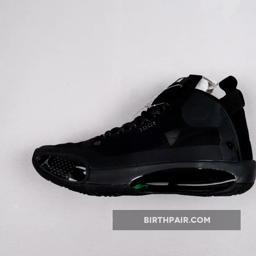 Set to appear on the Air Jordan 34, this colorway sticks with the hallmarks of previous “Black Cat” makeups including an all-black upper with dark grey details, but adds a few hits of Electric Green across the outsole and at the Eclipse Plate. To finish things off, reflective accents are featured on the tongue, heel, and branding.