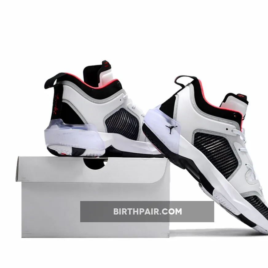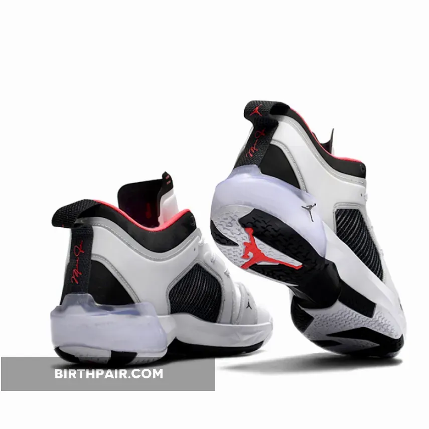 Clean design! ? White/Black/Siren Red colorway looks ? with Infrared accents. Zoom tech & comfort = ? #AirJordan37Low #NewSneakers ?