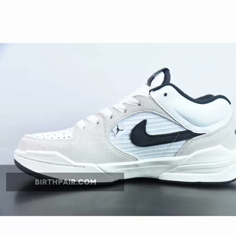 The Jordan Brand’s latest hybrid 90s-inspired model that combines the likes of Jordan Dub Zero, Spiz’ike and Six Rings, the Jordan Stadium 90, has a new variant with wearable minimalist hues. Take a closer look at the Jordan Stadium 90 “White Black”.This Stadium 90 pays homage to Tinker Hatfield’s classic designs. This includes the quarter panel netted design, the shark teeth outline along the lateral forefoot, padded collars, and embroidered Nike Air branding on the heel tabs. This sneaker is crafted from a combination of mesh, leather, and suede, featuring a white base and sail-coloured suede overlays. The signature profile Swooshes on both the medial and lateral mid-panels are in contrasting pitch black. Other notable features include the Formula 23 cushioning on the midsole, Air Jordan Stadium 90 tongue labels and “Flight” branding on the tongue lining.